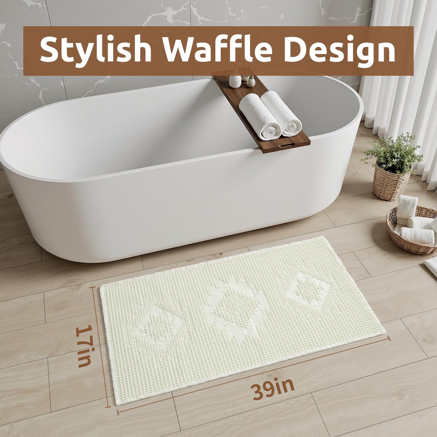 Waffle Bathroom Runner Rug, Super Absorbent Bath Mat, Machine Washable Non Sl...
