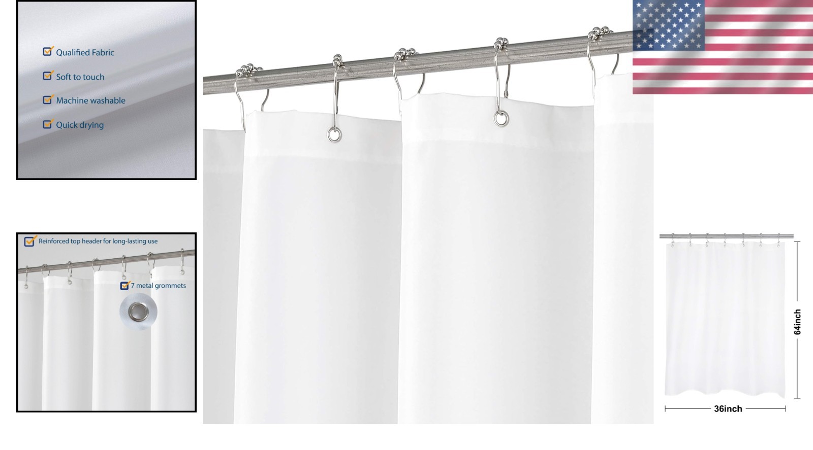 Особенности: Water Repellent, Machine Washable, Durable, Light-Filtering, Quick Dry, Reinforced Top Header, Rustproof Grommets, PVC Free