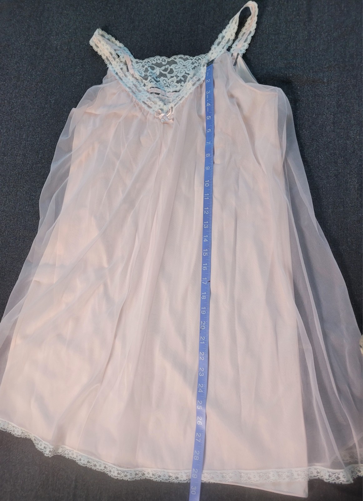 как выглядит Vintage 60s 70s Baby Pink White Lace Layered Nightgown Mesh Nylon Babydoll S/M фото
