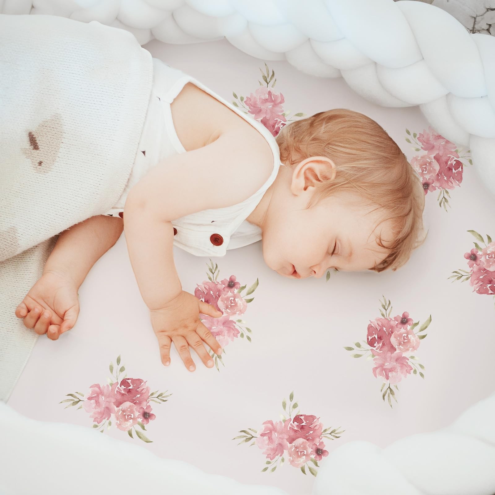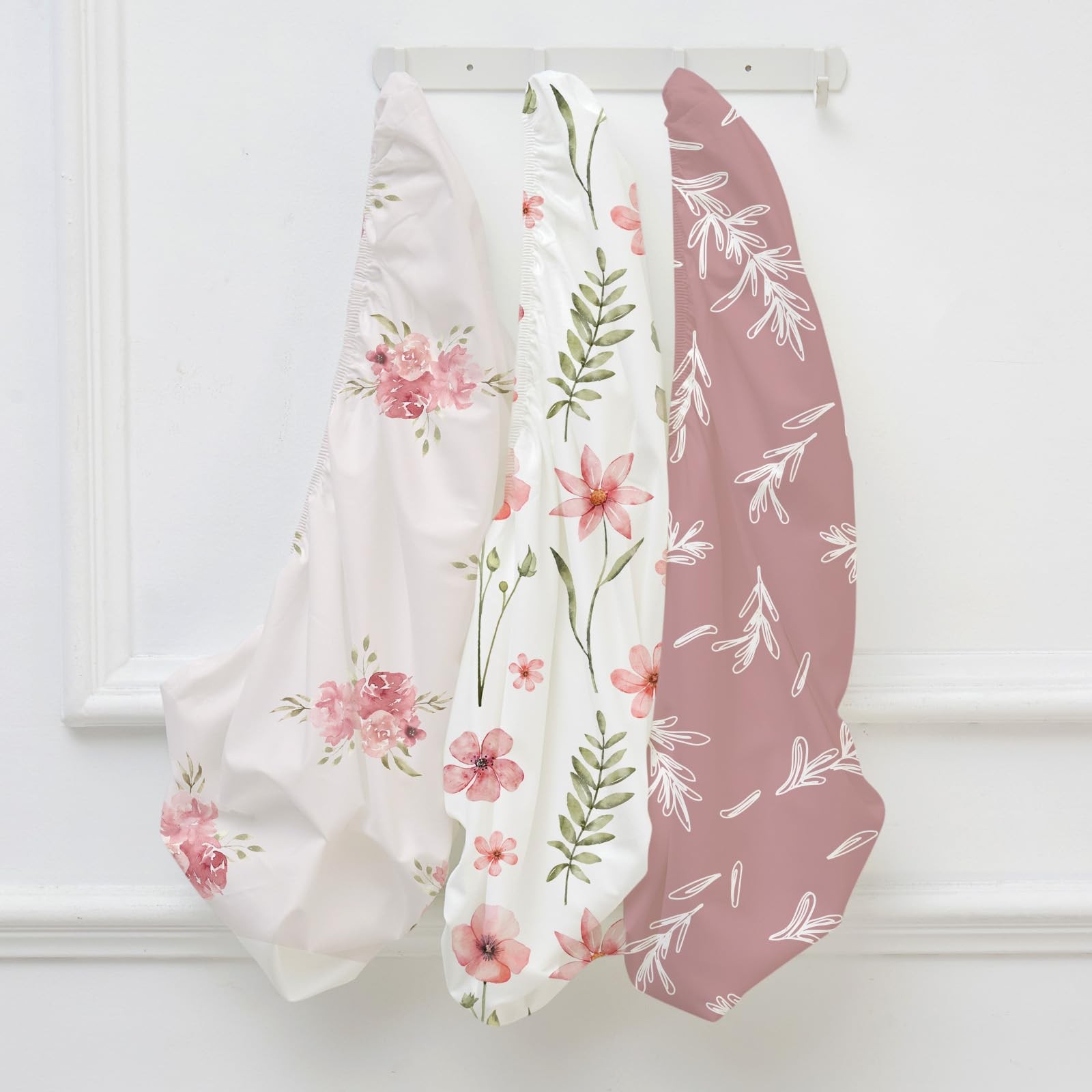 Floral Bassinet Sheets Girl 3 Pack, Breathable Cozy Fitted Mattress Sheet, El...
