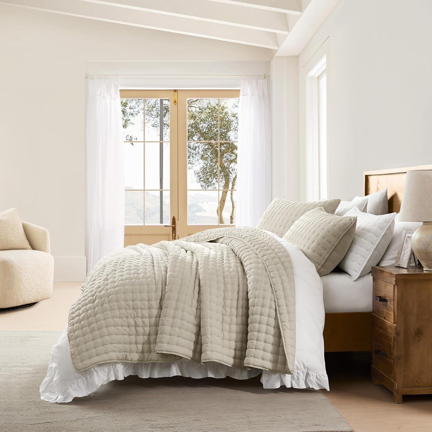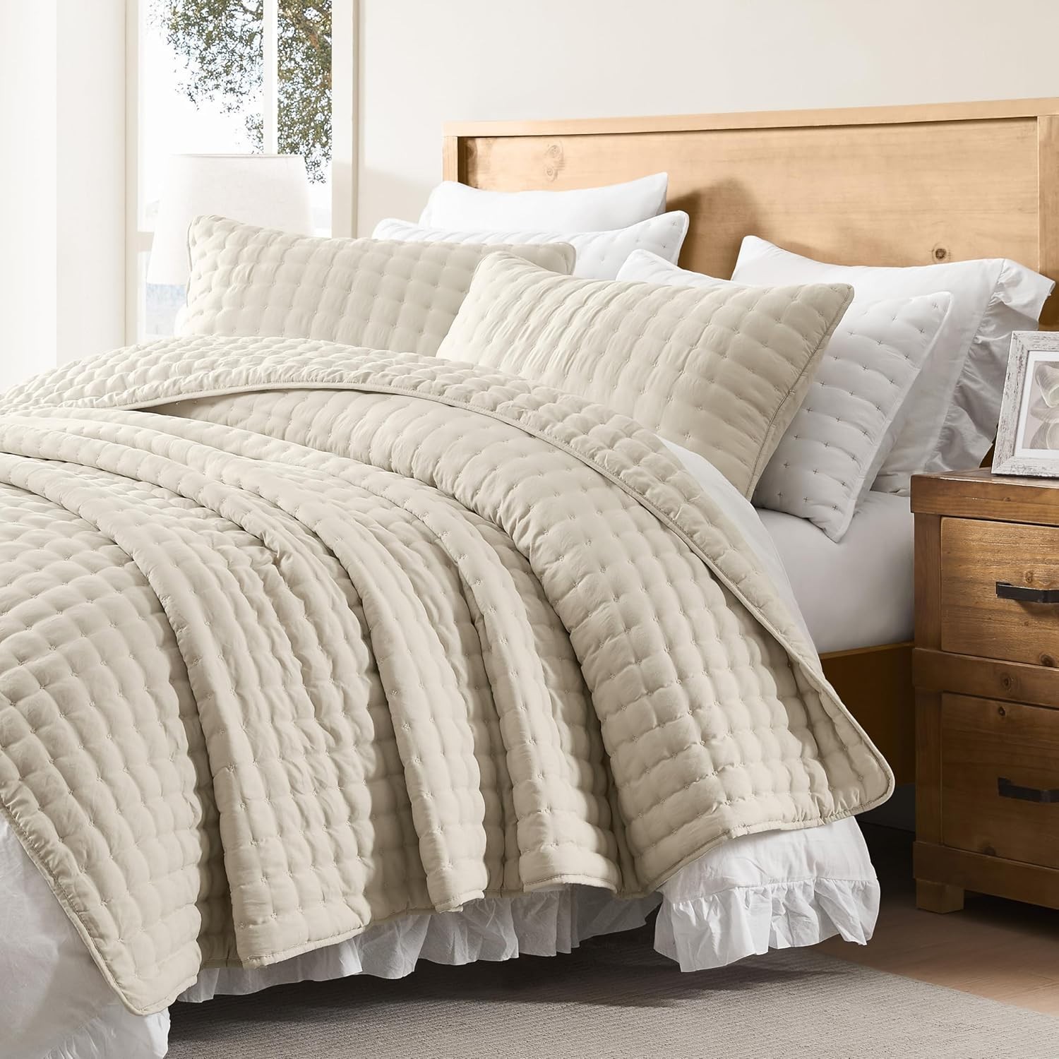 Modern Beige Twin Quilt Size Bedding - Lightweight