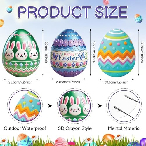 как выглядит 3 Pcs Easter Decorations Outdoor 3D Metal Easter Eggs Yard Signs Classic Style фото