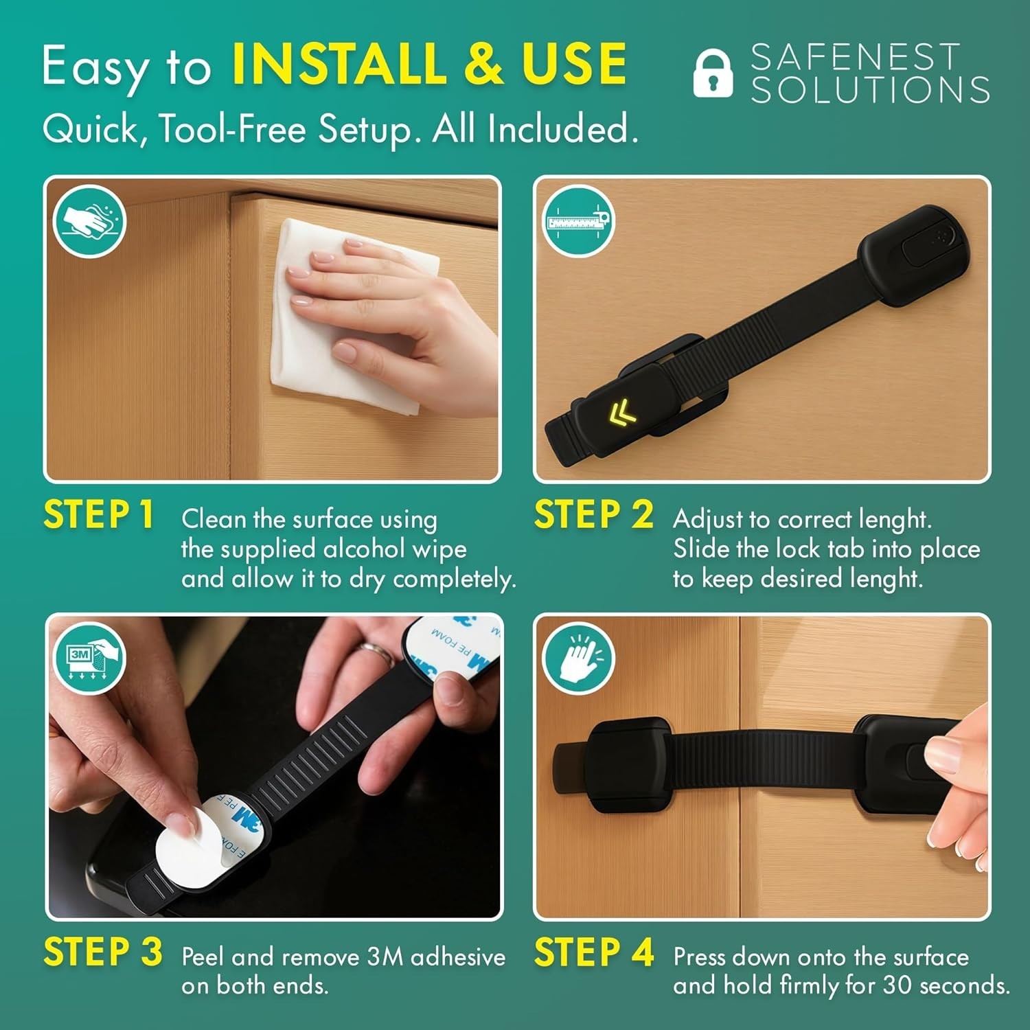 SAFENEST Child Proof Cabinet Locks 5 Pack Black 3M Adhesive for Cabinets
