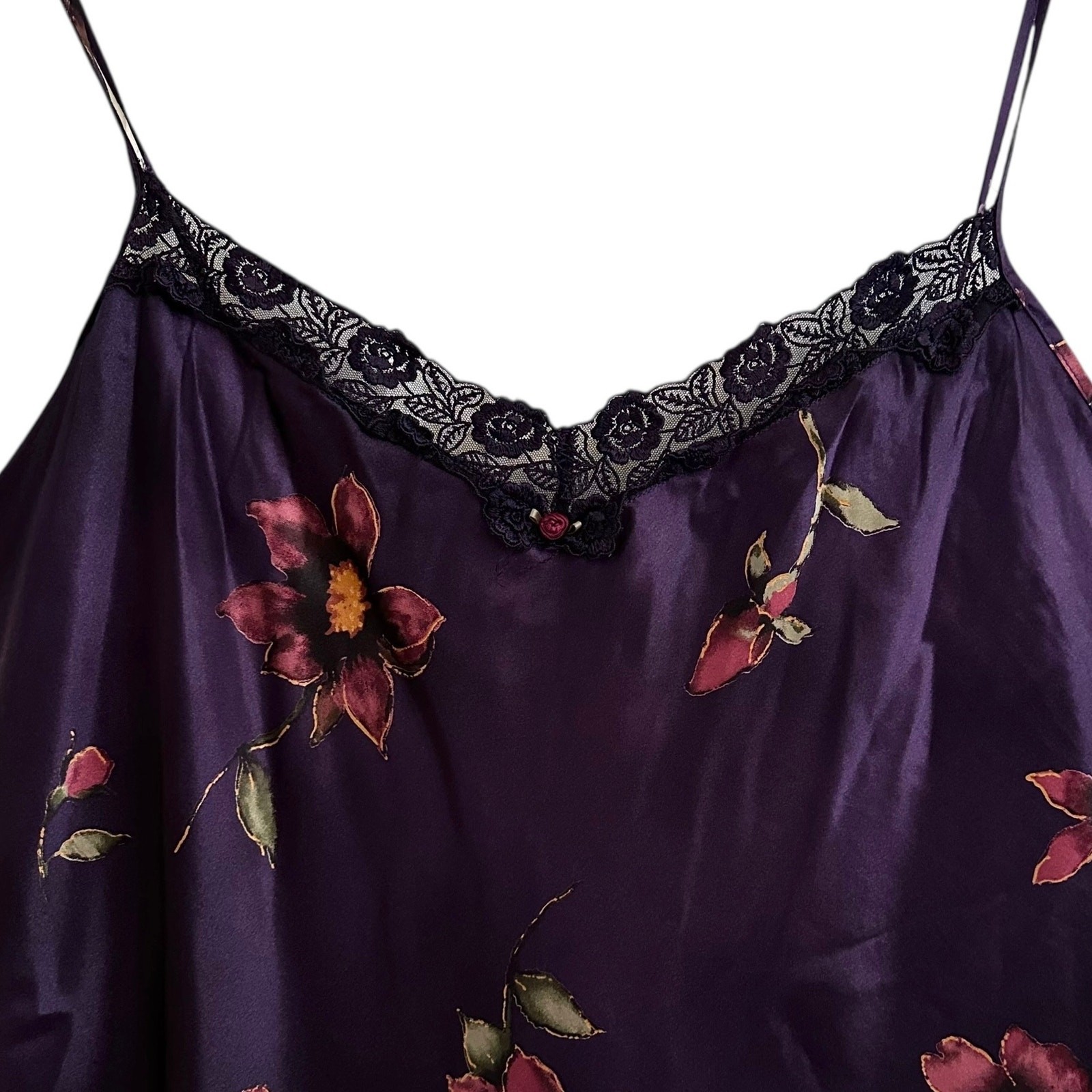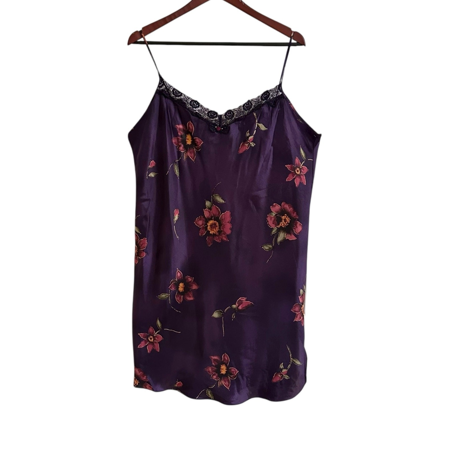 Vintage Delicates Lace Edge Slip Dress Nightie Lingerie Dark Floral Sz XL