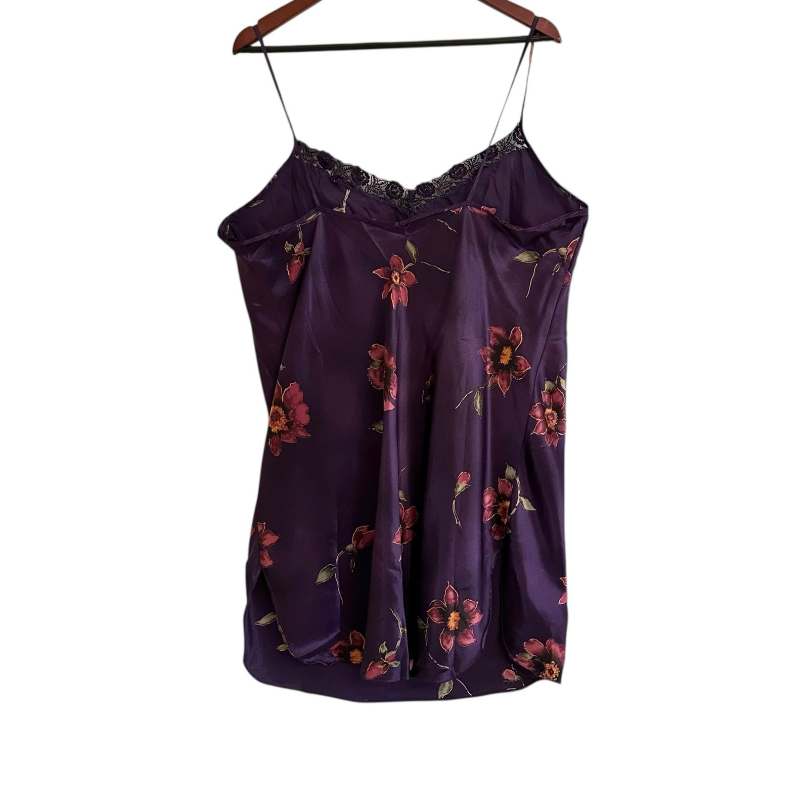 как выглядит Vintage Delicates Lace Edge Slip Dress Nightie Lingerie Dark Floral Sz XL фото