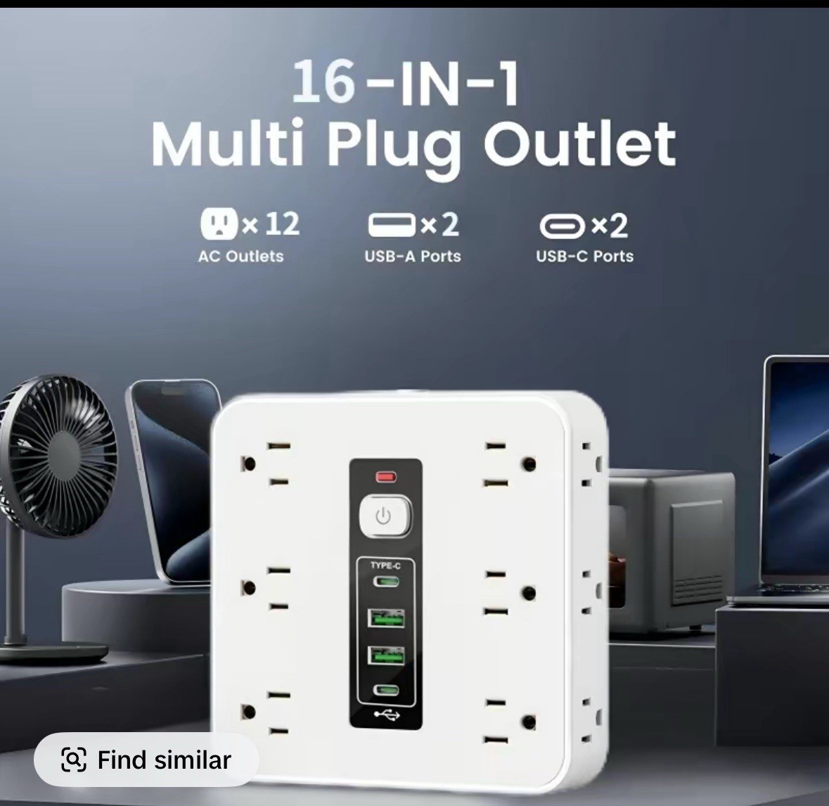 16-in-1 Multi Plug Power Strip 12 Outlets USB-A/USB-C Overload 1.5m