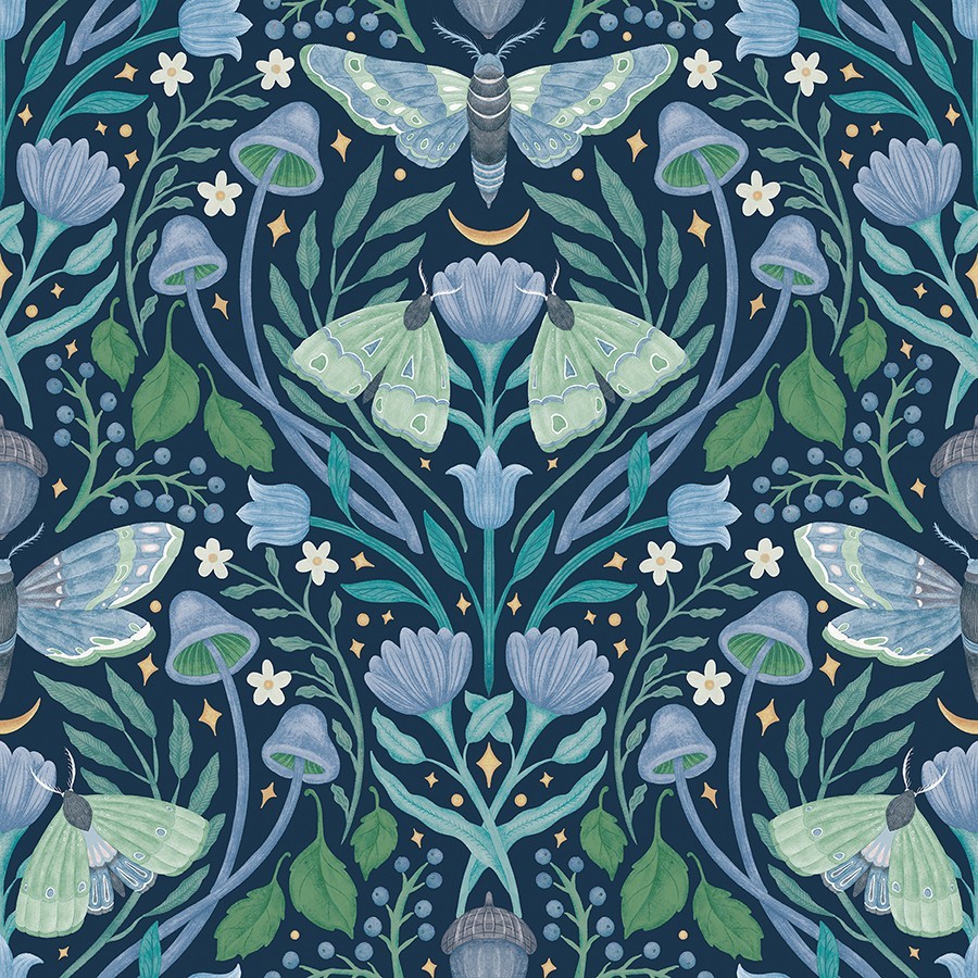 Enchanted Forest Damask Blue Peel and Stick Wallpaper