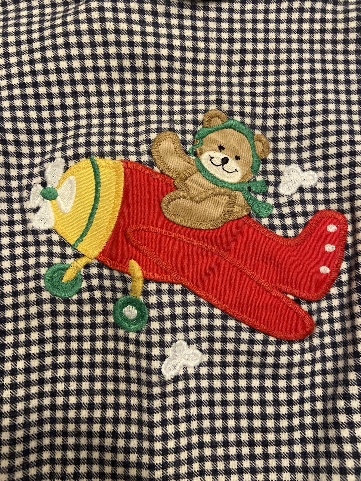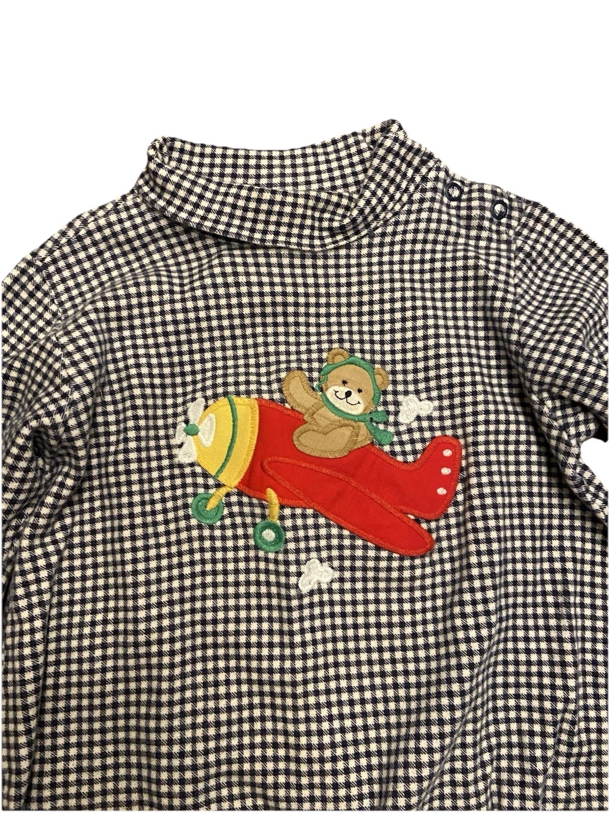 Vintage Kelly s Kids Gingham Turtleneck Romper Bear Airplane Boys Size 2T