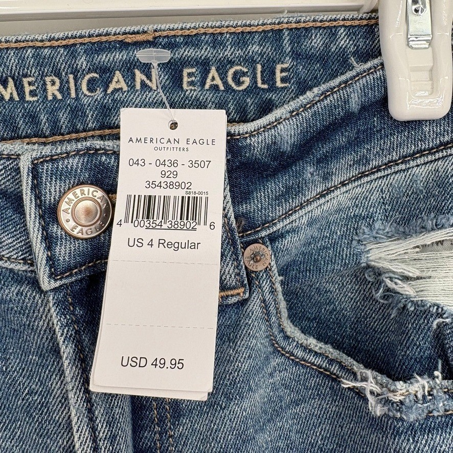 NWT American Eagle Outfitters Mom Straight Jean Distressed Medium Wash Size 4