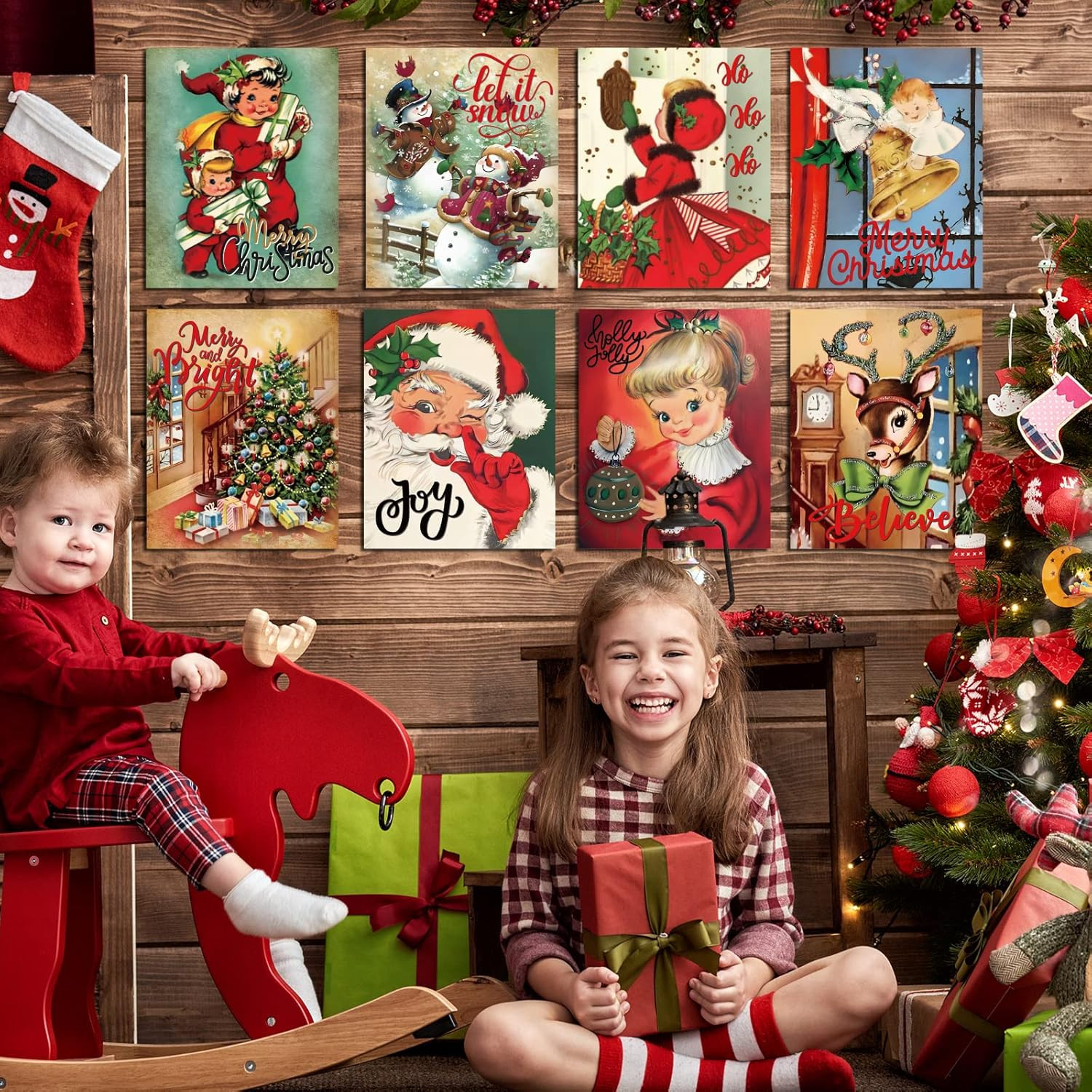 12 Pcs Christmas Wall Art Vintage Xmas Wall Picture Decor Holiday Santa Snowman
