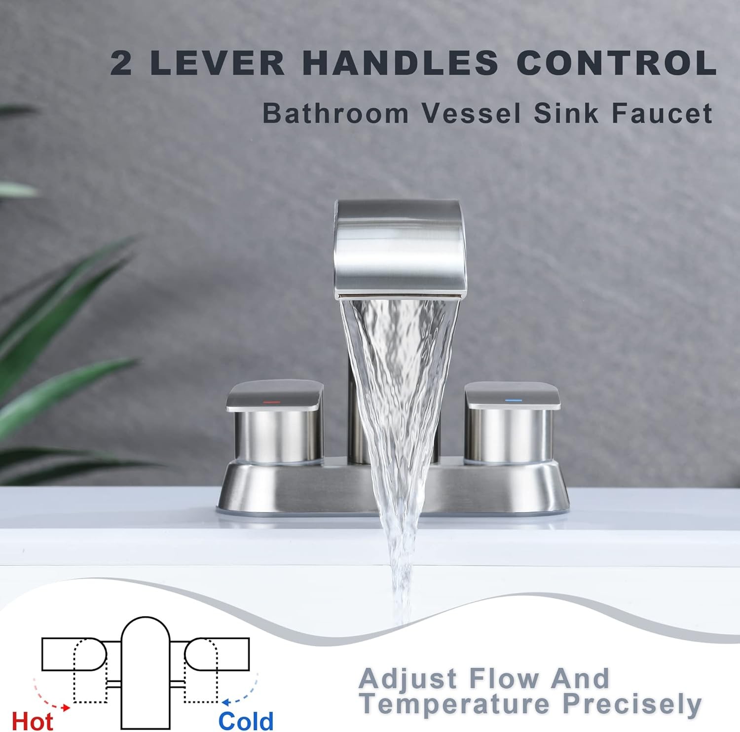 Waterfall Bathroom Sink Faucet Brushed Nickel, Two Handles Bathroom Faucet with