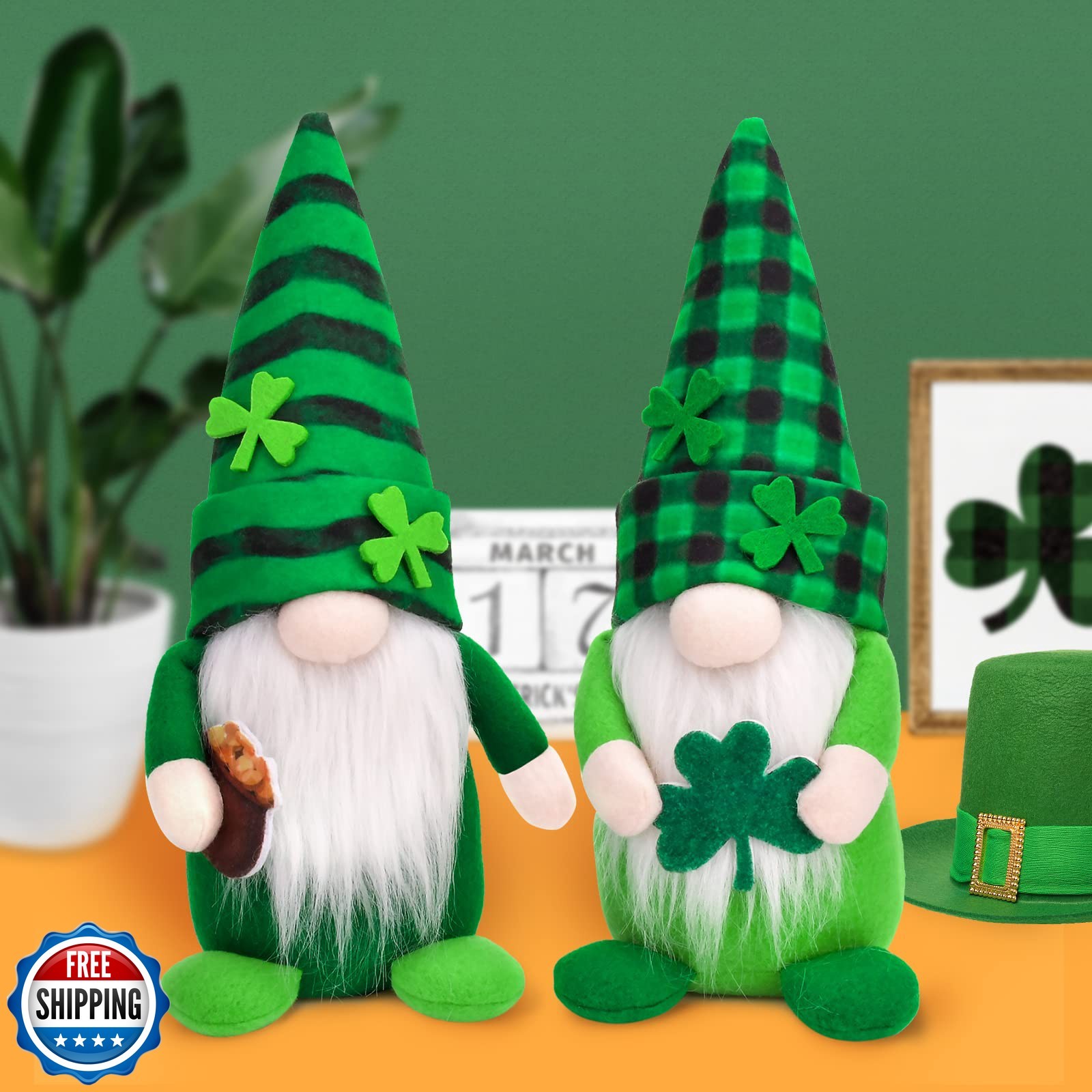 как выглядит St Patricks Day Gnomes Decorations, 2 Pack Gnomes Plush Lucky Green Shamrock ... фото