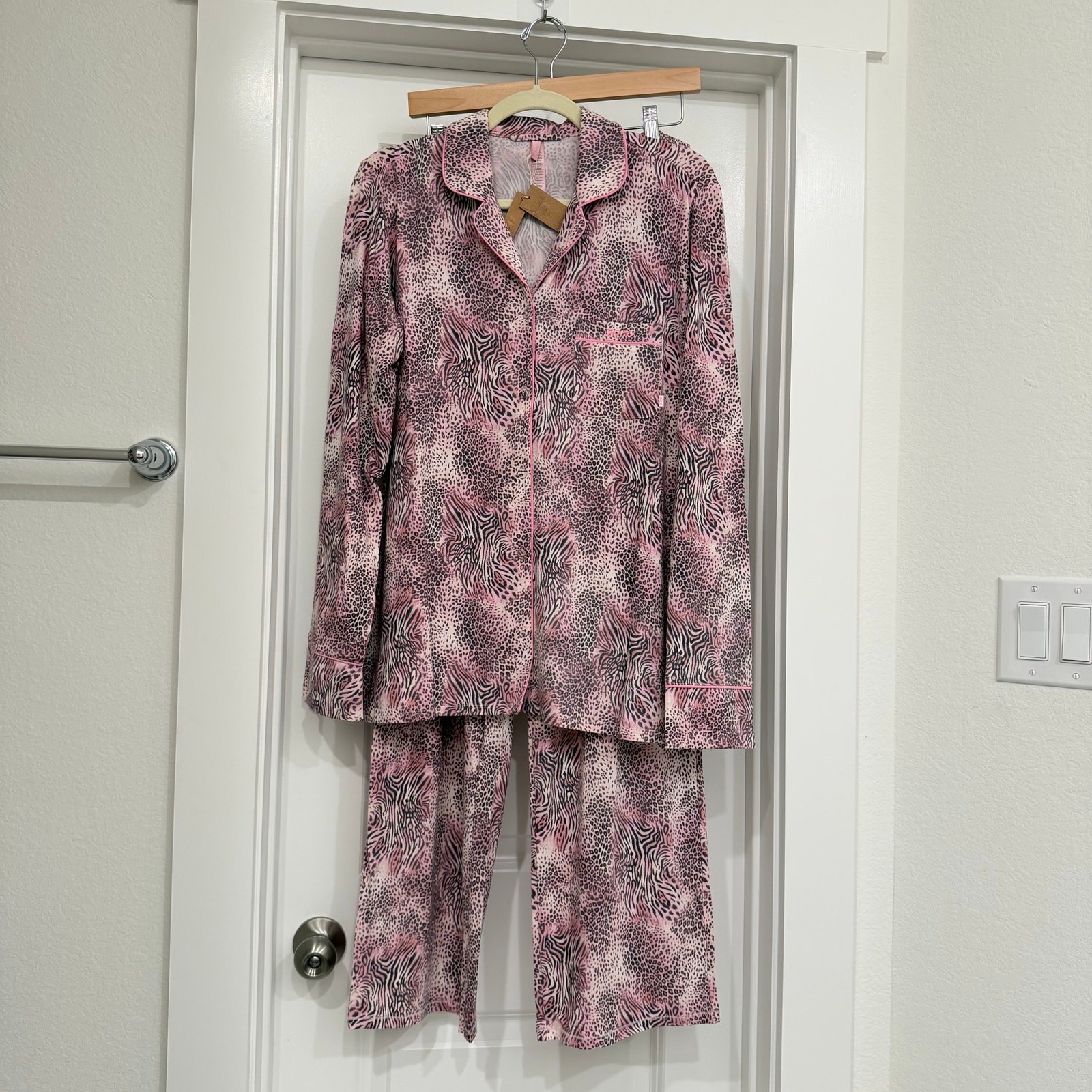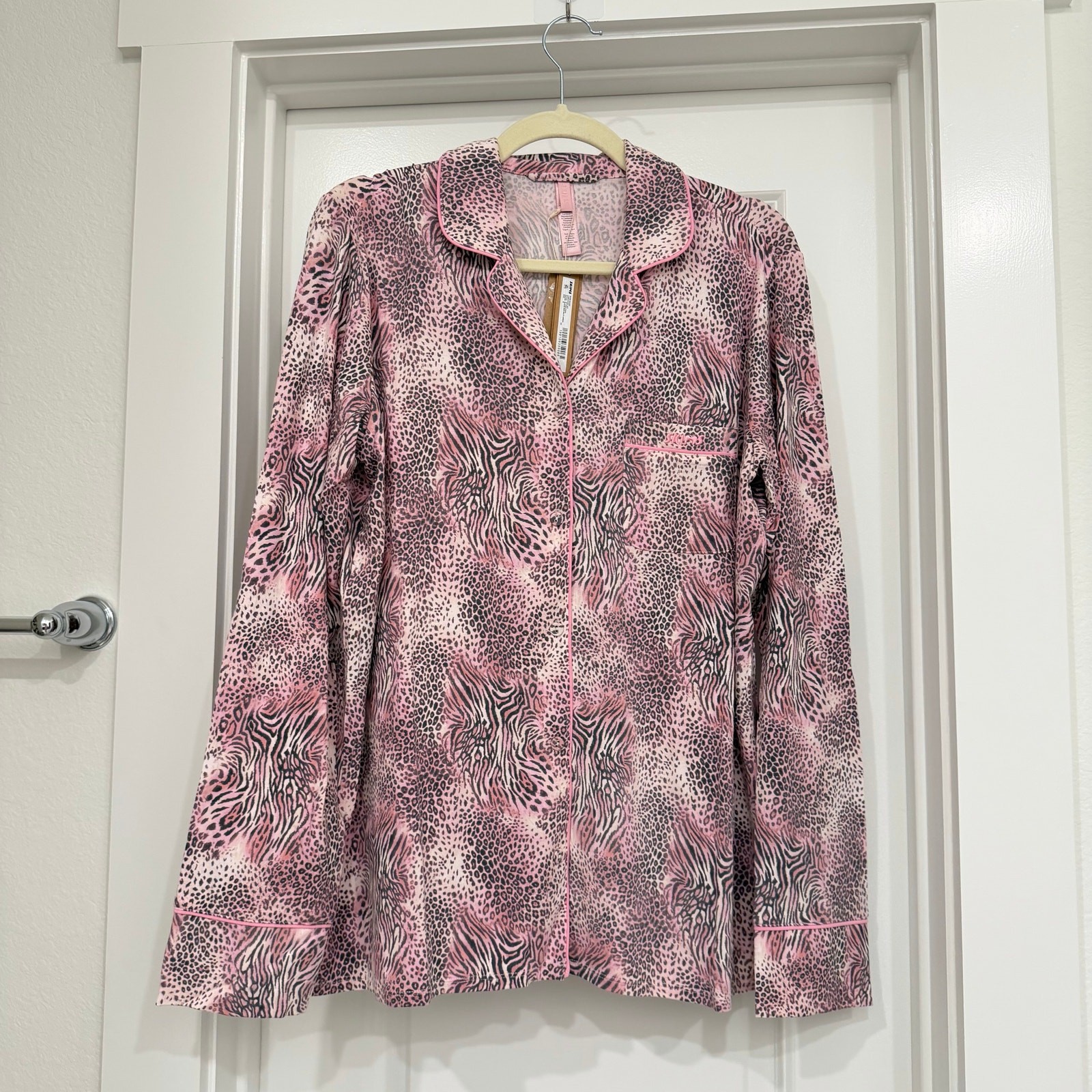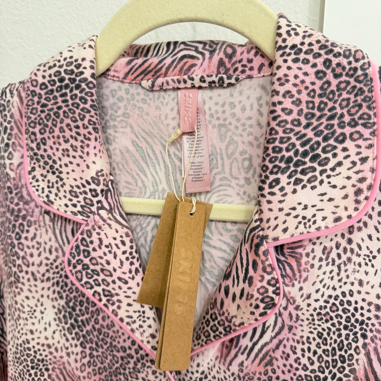 NWT SKIMS SLEEP LONG SLEEVE BUTTON UP SET IN BLOOM MINI ANIMAL PRINT SIZE SMALL