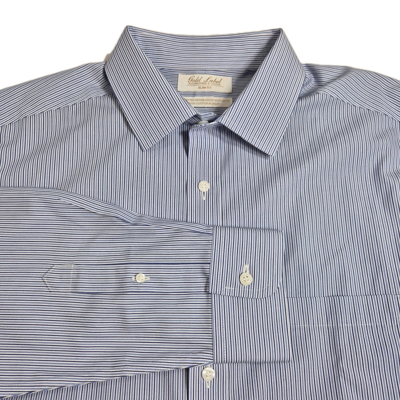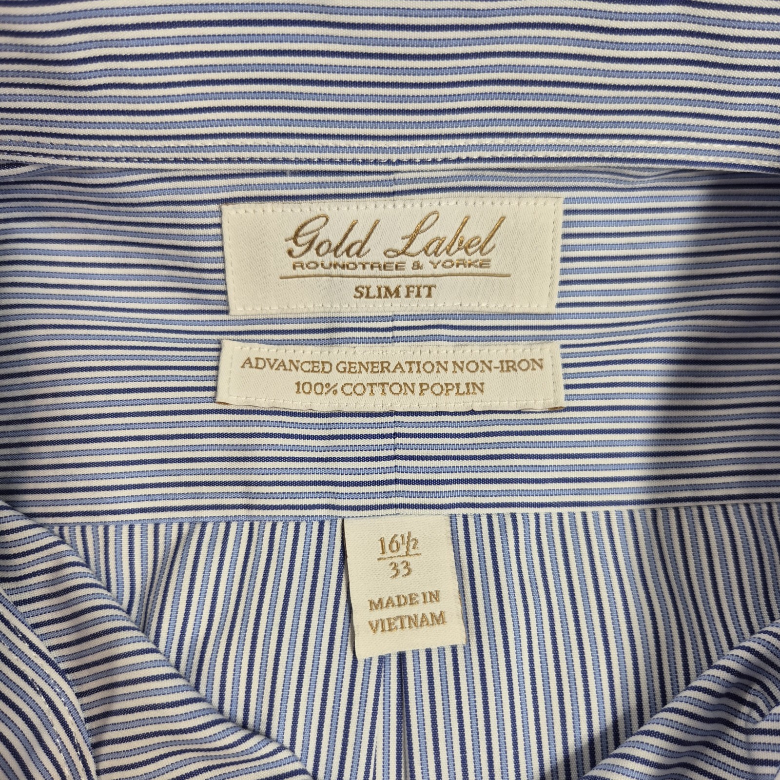 Roundtree Yorke Gold Label Men's Shirt Size 16.5 33 Blue White Slim Poplin 59