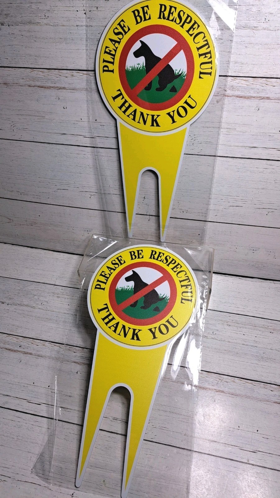 как выглядит 2 Pack No Poop Dog Sign With Stake 12" x 6",Double Sided No Pooping Dog Sign... фото