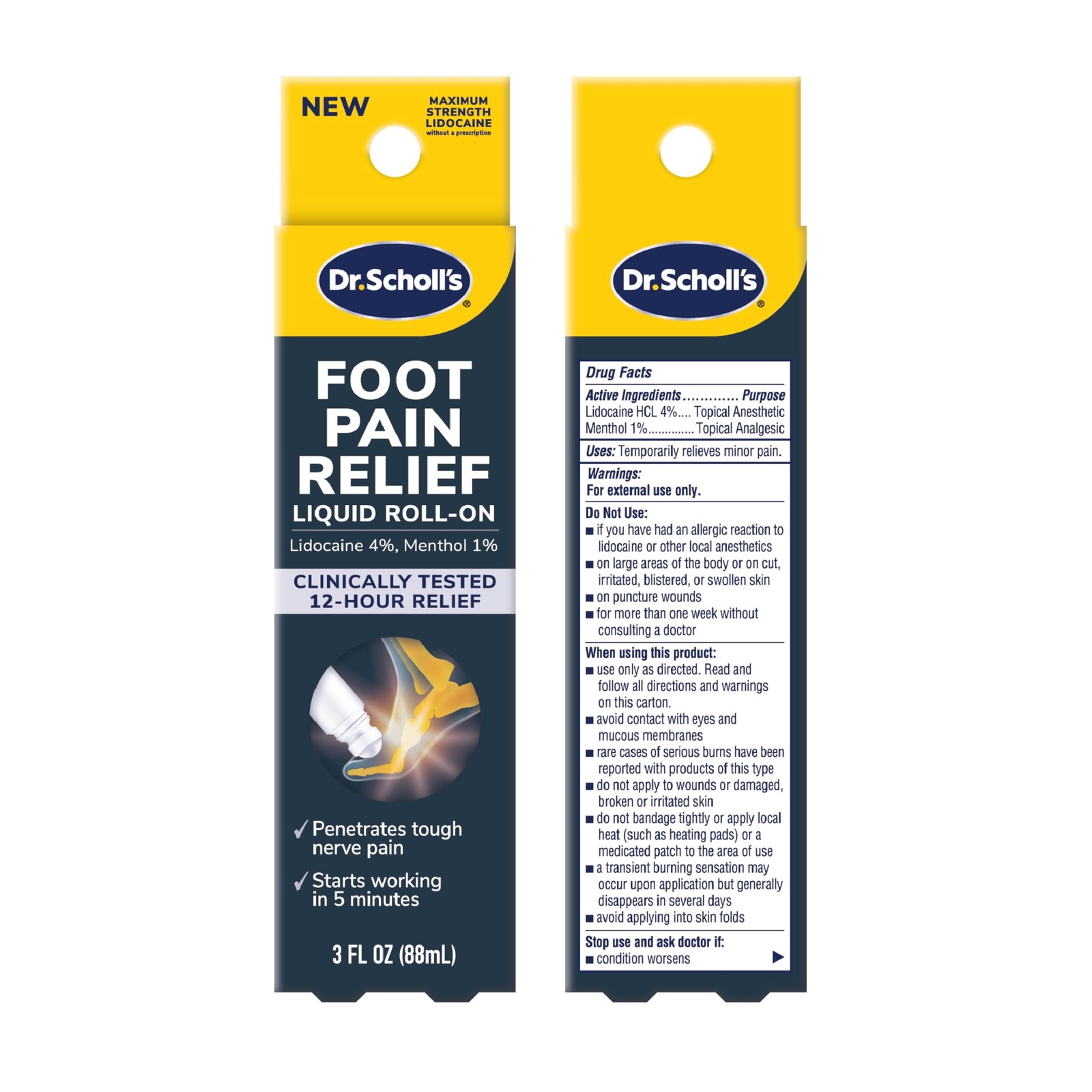 Dr. Scholl's Foot Pain Relief Liquid ROLL-ON, 3.0 oz // Ounce, White