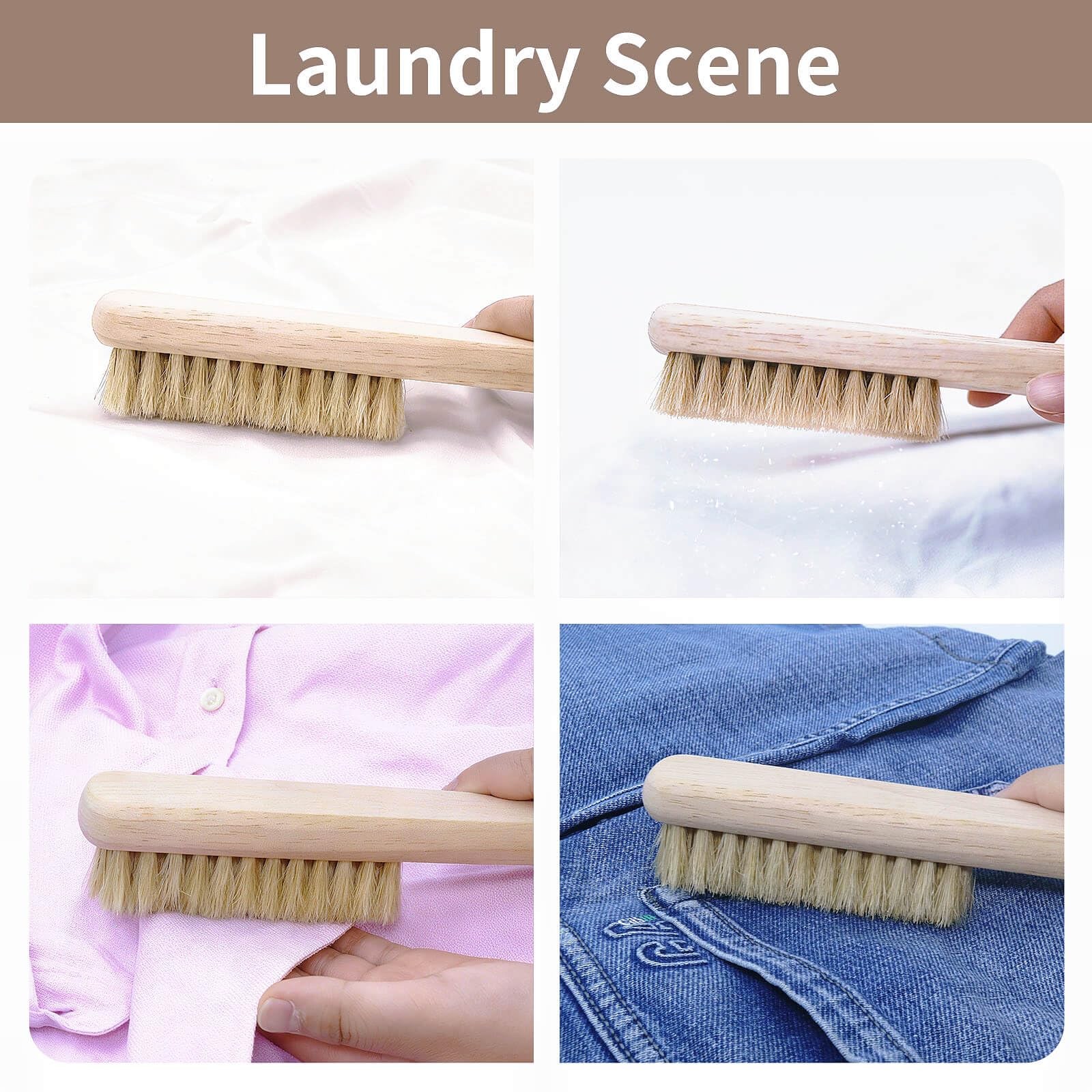 Wood Laundry Stain Brush with Boar Bristle, Tough Remover Large, Brown