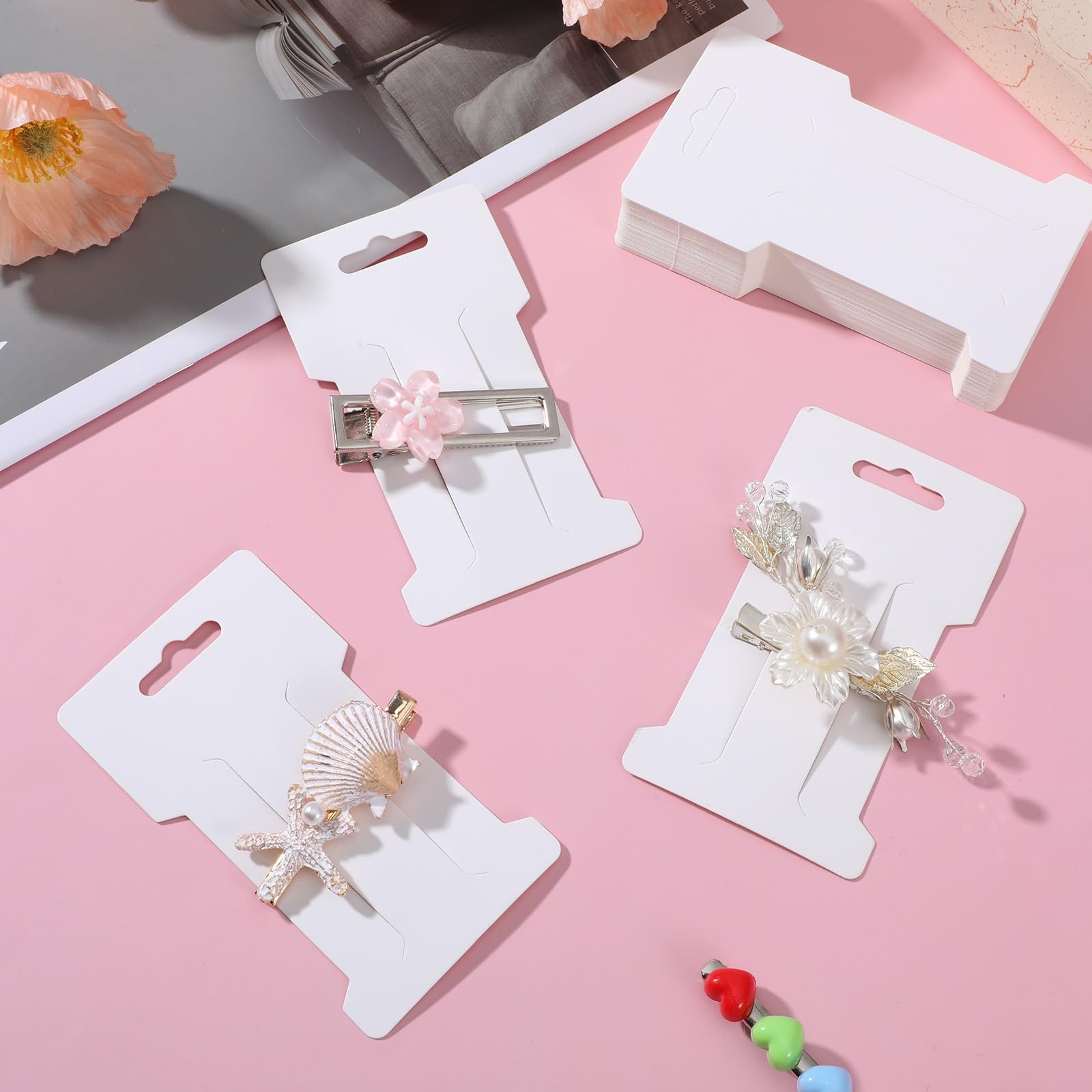 500 PCS Hair Clip Bow Display Cards Hair Barrettes Jewelry Display Holder Rec...