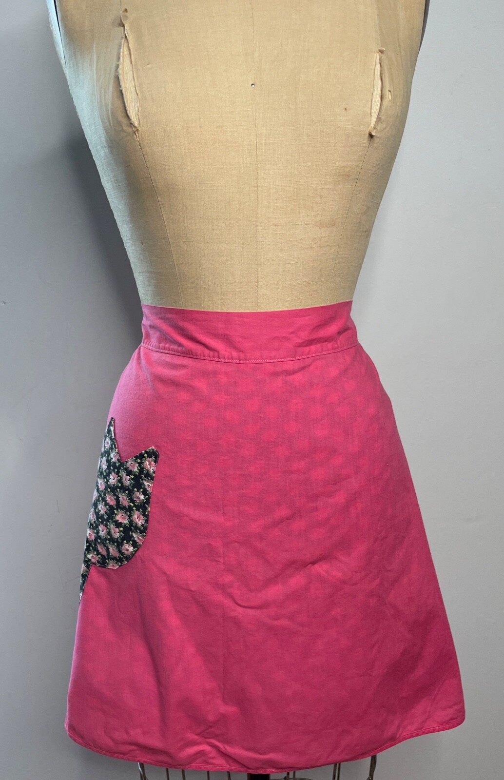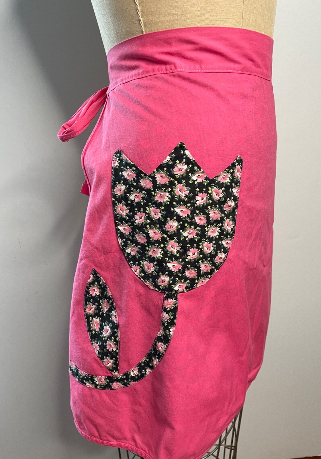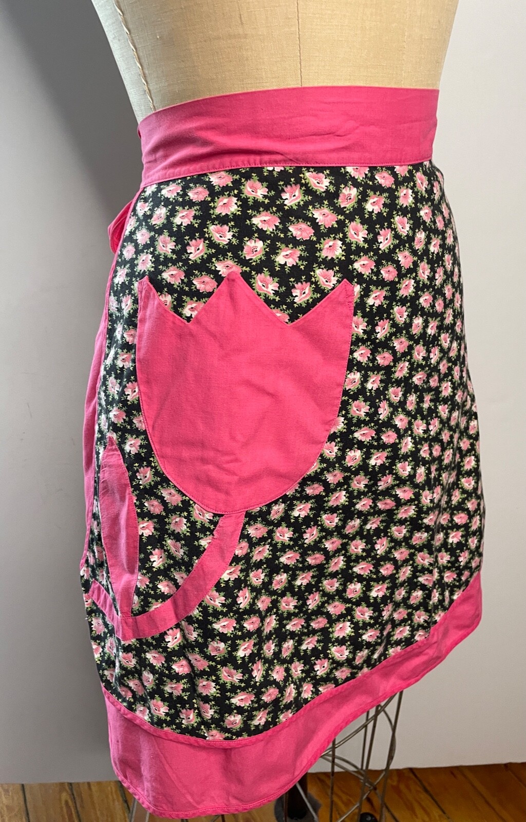 как выглядит VTG 60S PRETTY PINK BLACK TULIP FLORAL PRINT TIE BACK HALF REVERSIBLE APRON S фото