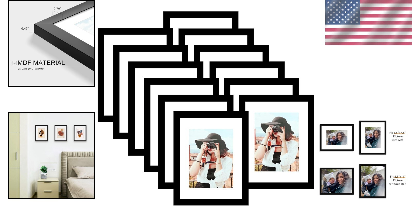 как выглядит Eco-Friendly Black Picture Frames Set of 12 - Elegant Display for Memories фото