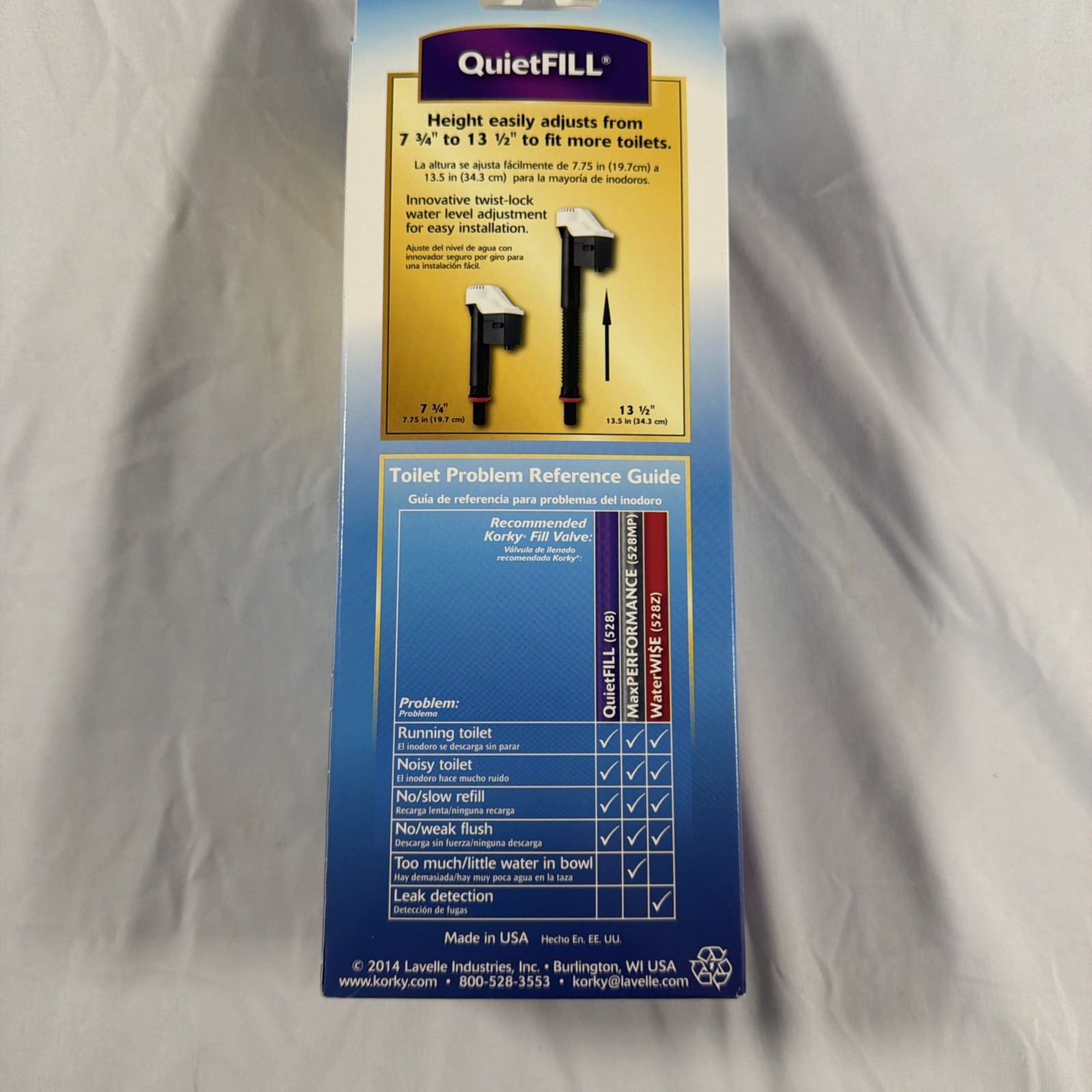 KORKY 528 Toilet Fill Valve - Universal Quietfill - Made in USA New In Box