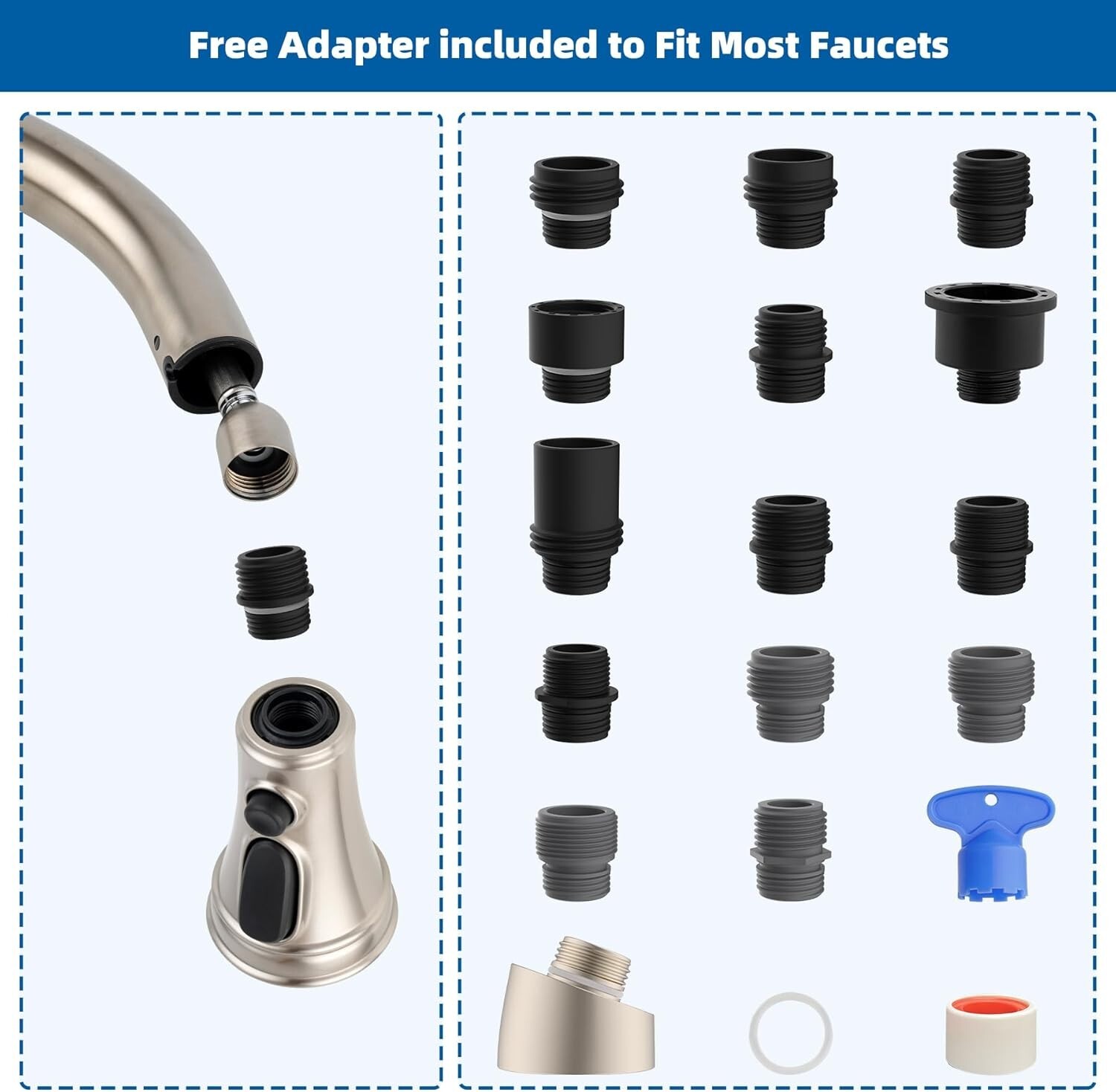 3-in-1 Kitchen Faucet Spray Head Replacement with No Drip Design Aerator Key