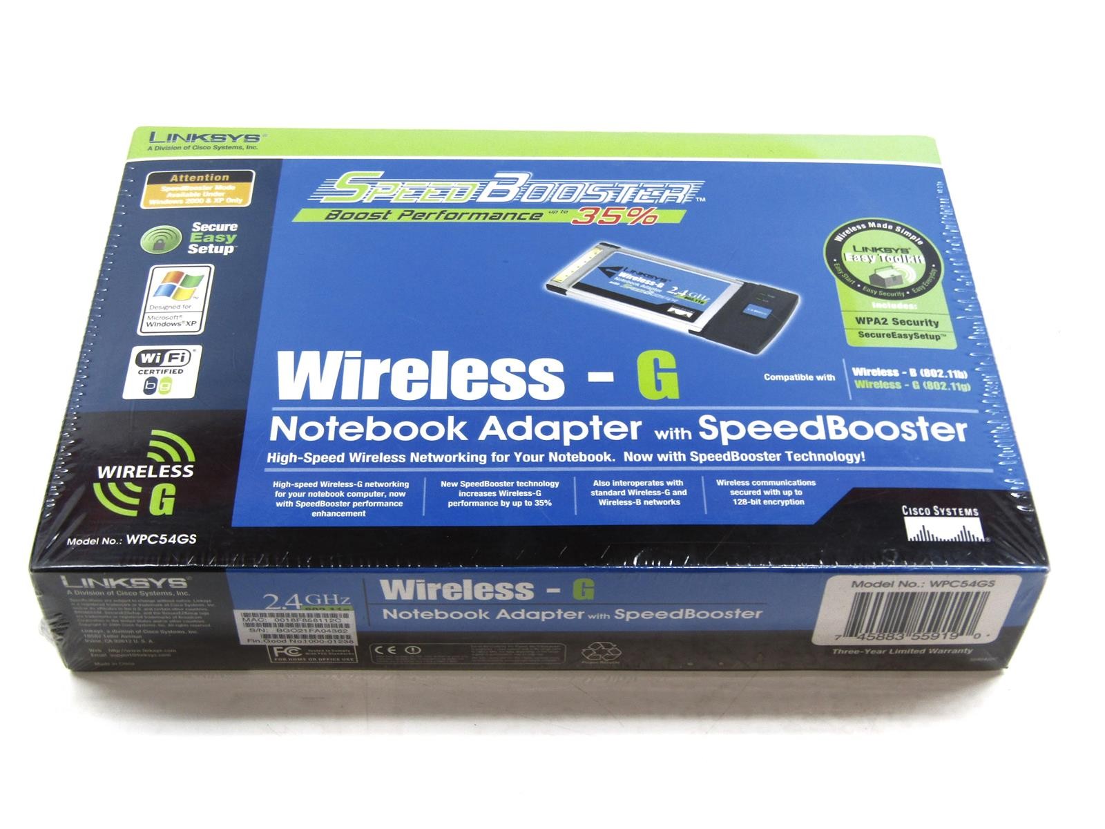 Linksys WPC54GS Wireless Notebook Network Adapter Card with SpeedBooster
