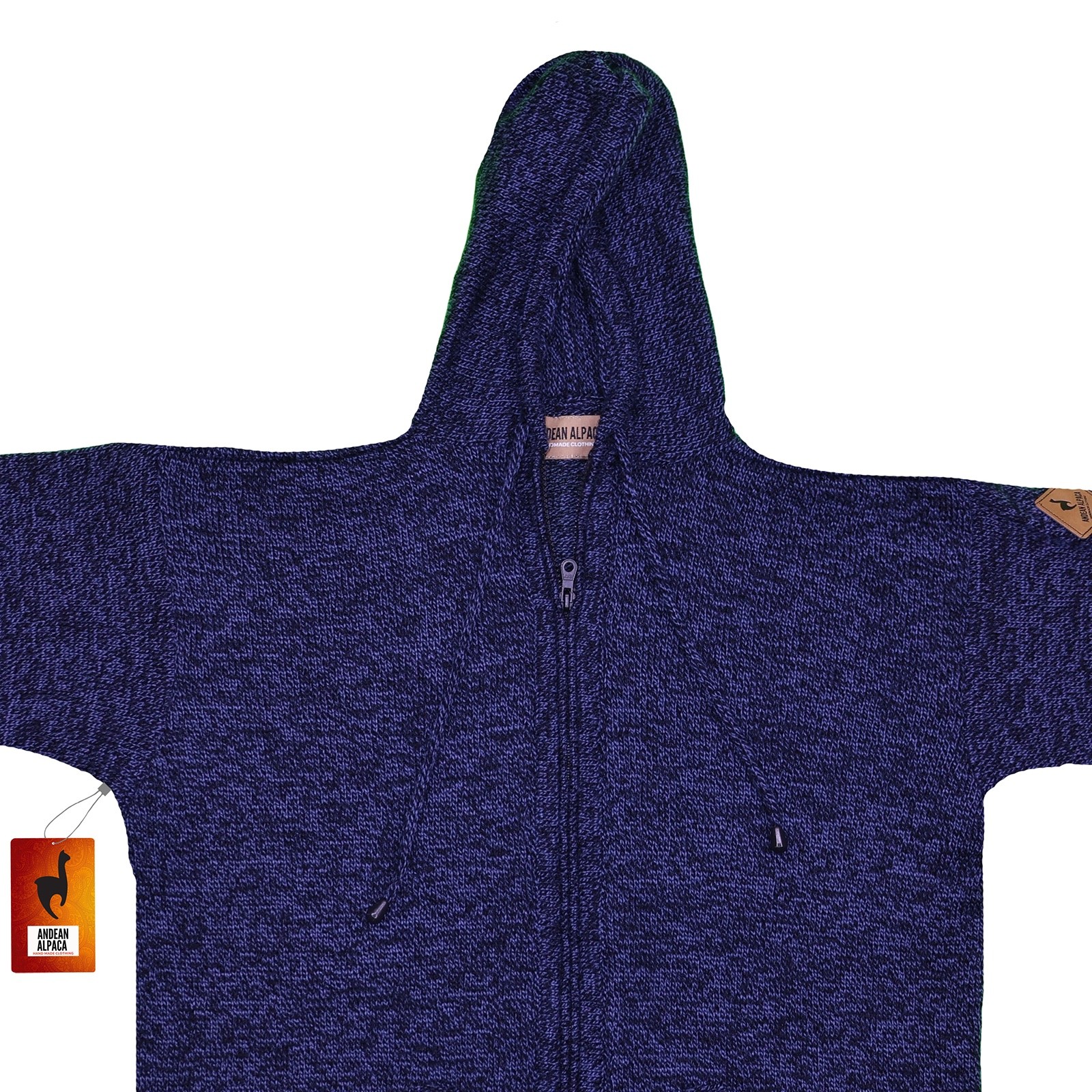 как выглядит MEN HANDMADE ANDEAN ALPACA SOLID BLUE ZIP HOODIE SWEATER SZ M фото