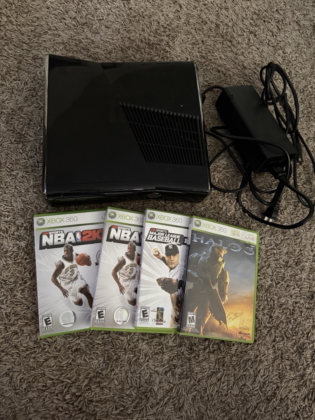 Xbox 360 Slim 250gb Console With 5 Games Tested And Working