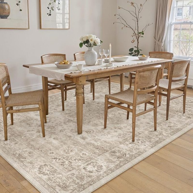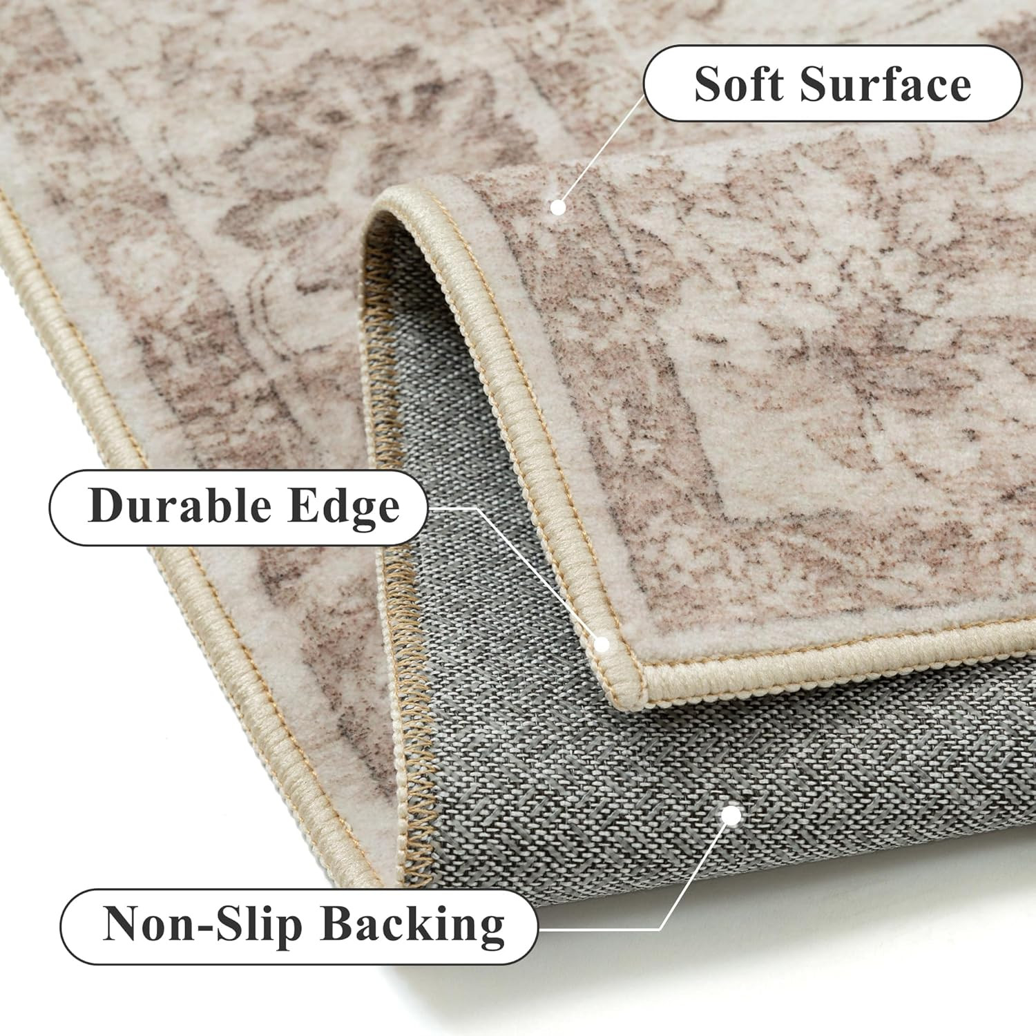 Washable 5X7 Area Rug for Living Room Beige Neutral Vintage Large Rug Non-Slip S