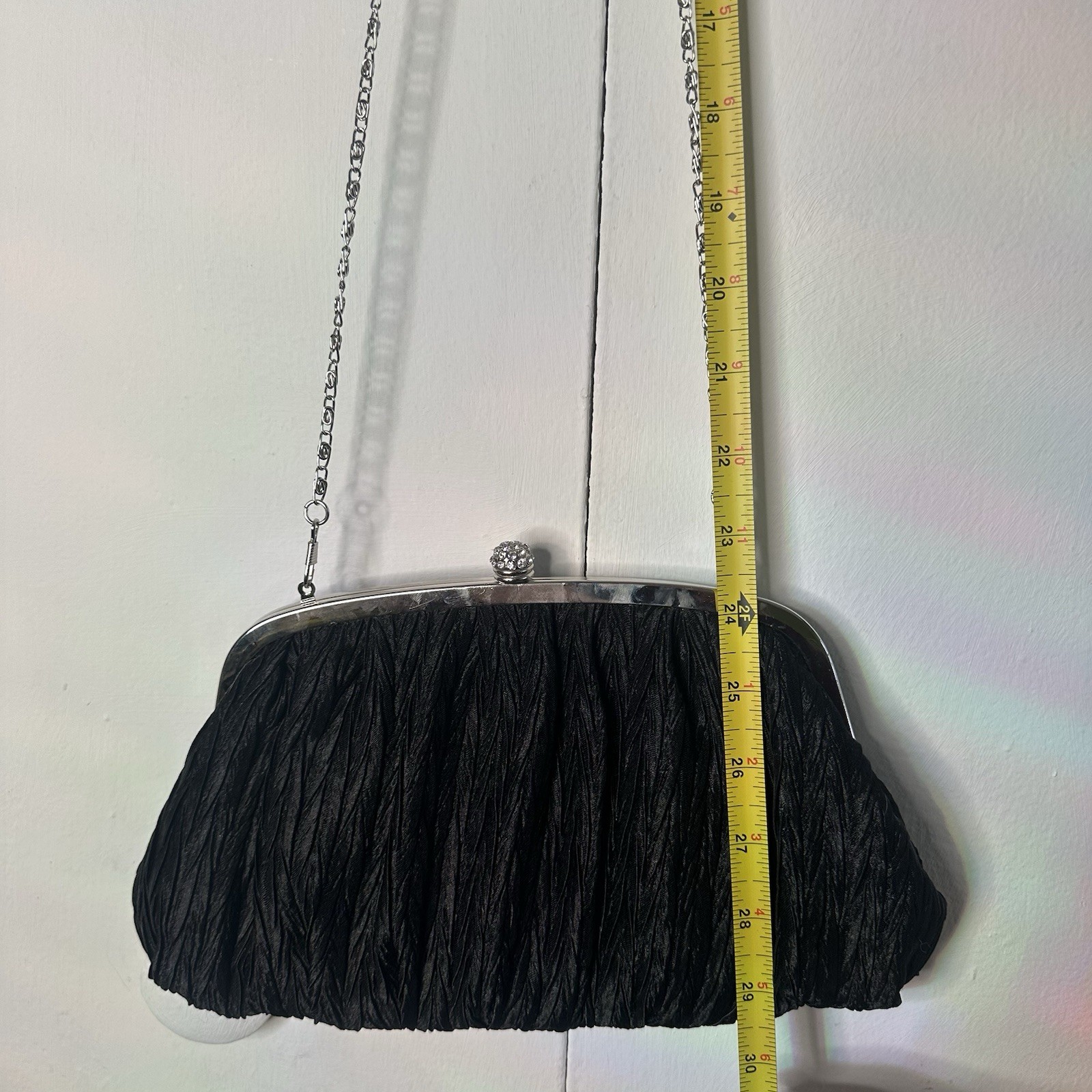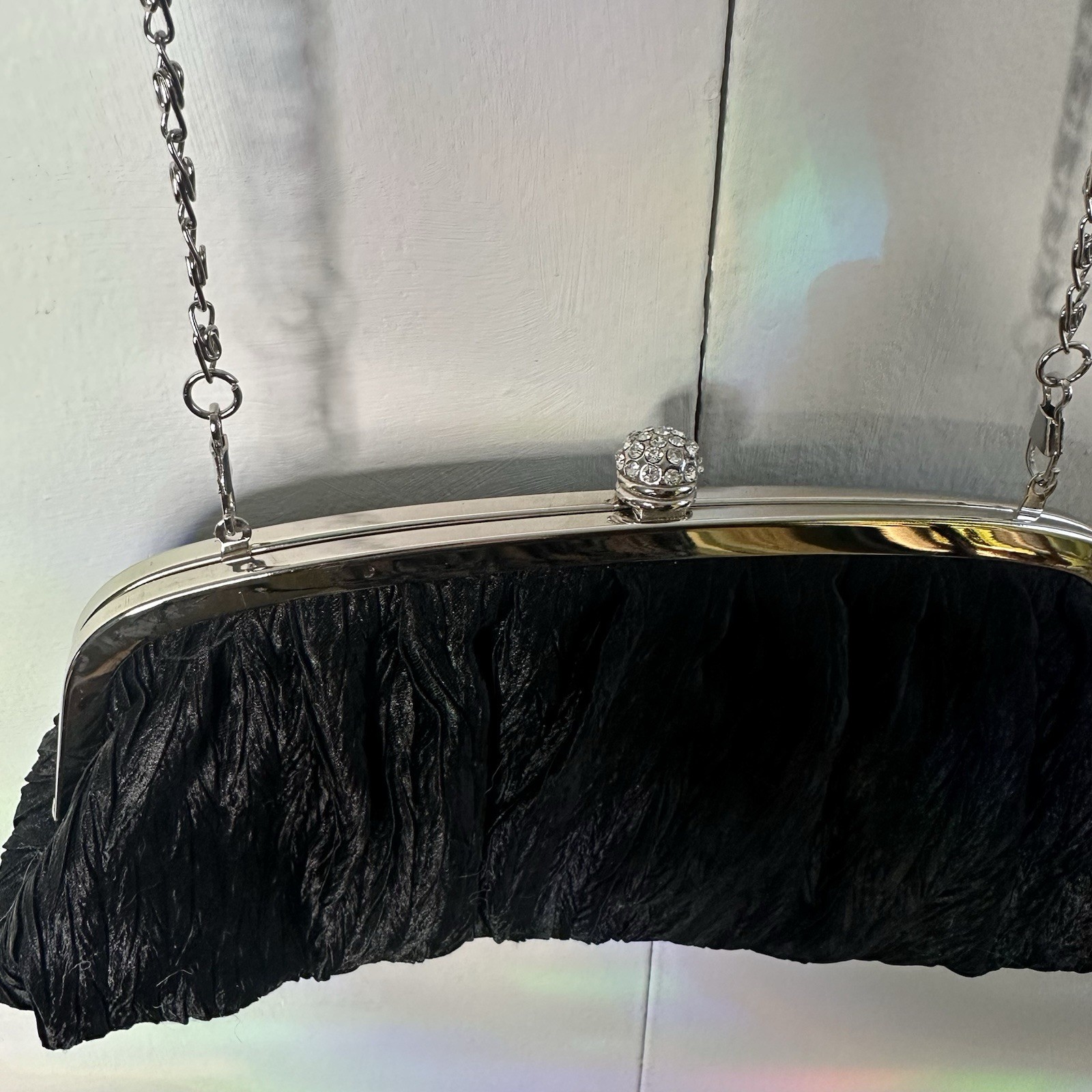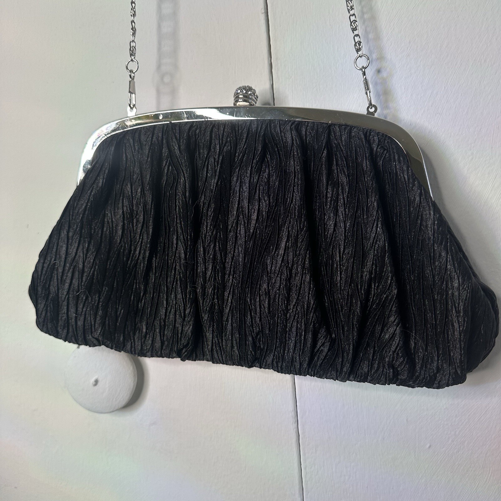 как выглядит Neiman Marcus Vintage Black Ruched Clutch Bag Evening Purse Chain Strap фото