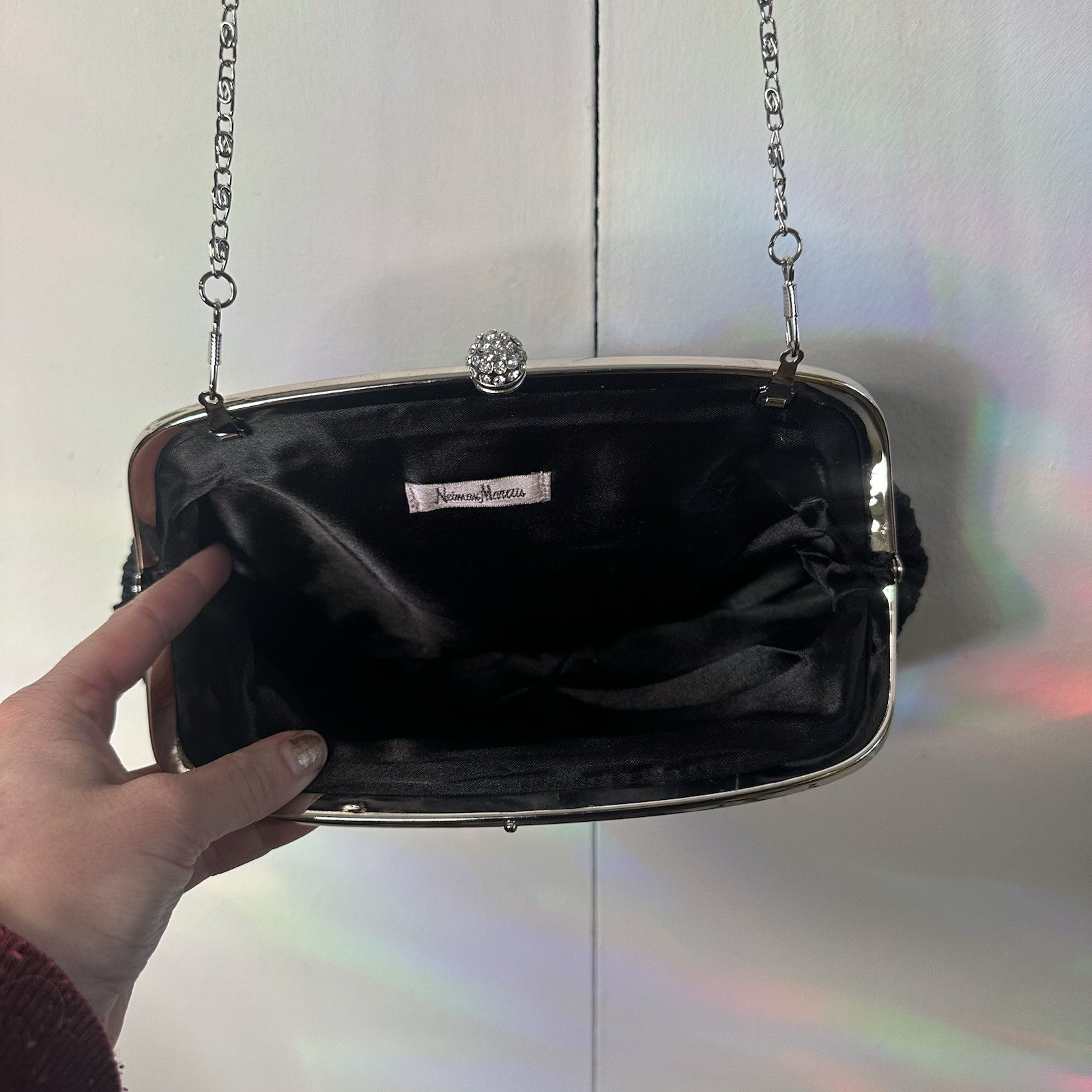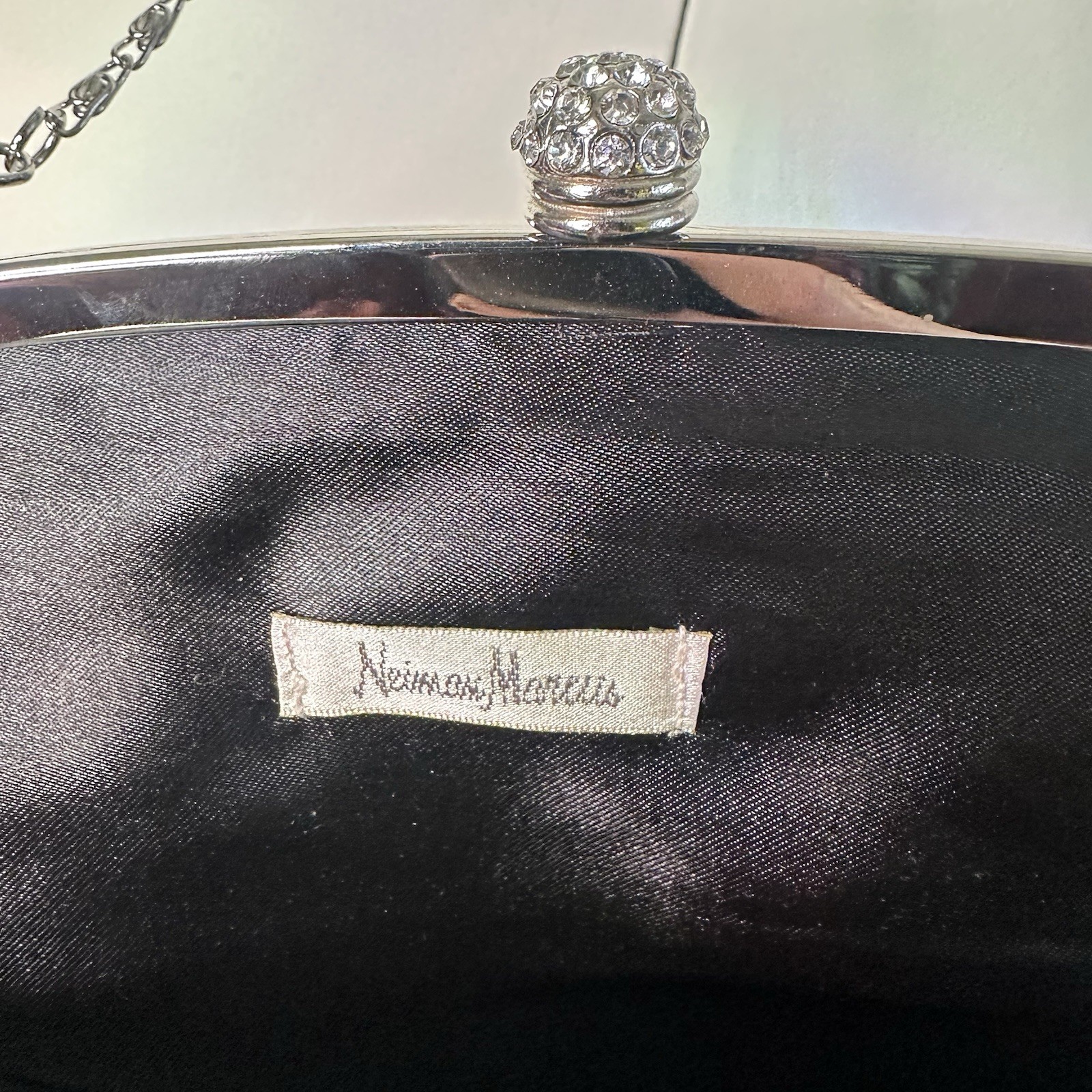 Neiman Marcus Vintage Black Ruched Clutch Bag Evening Purse Chain Strap