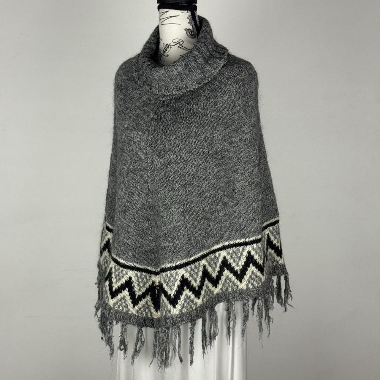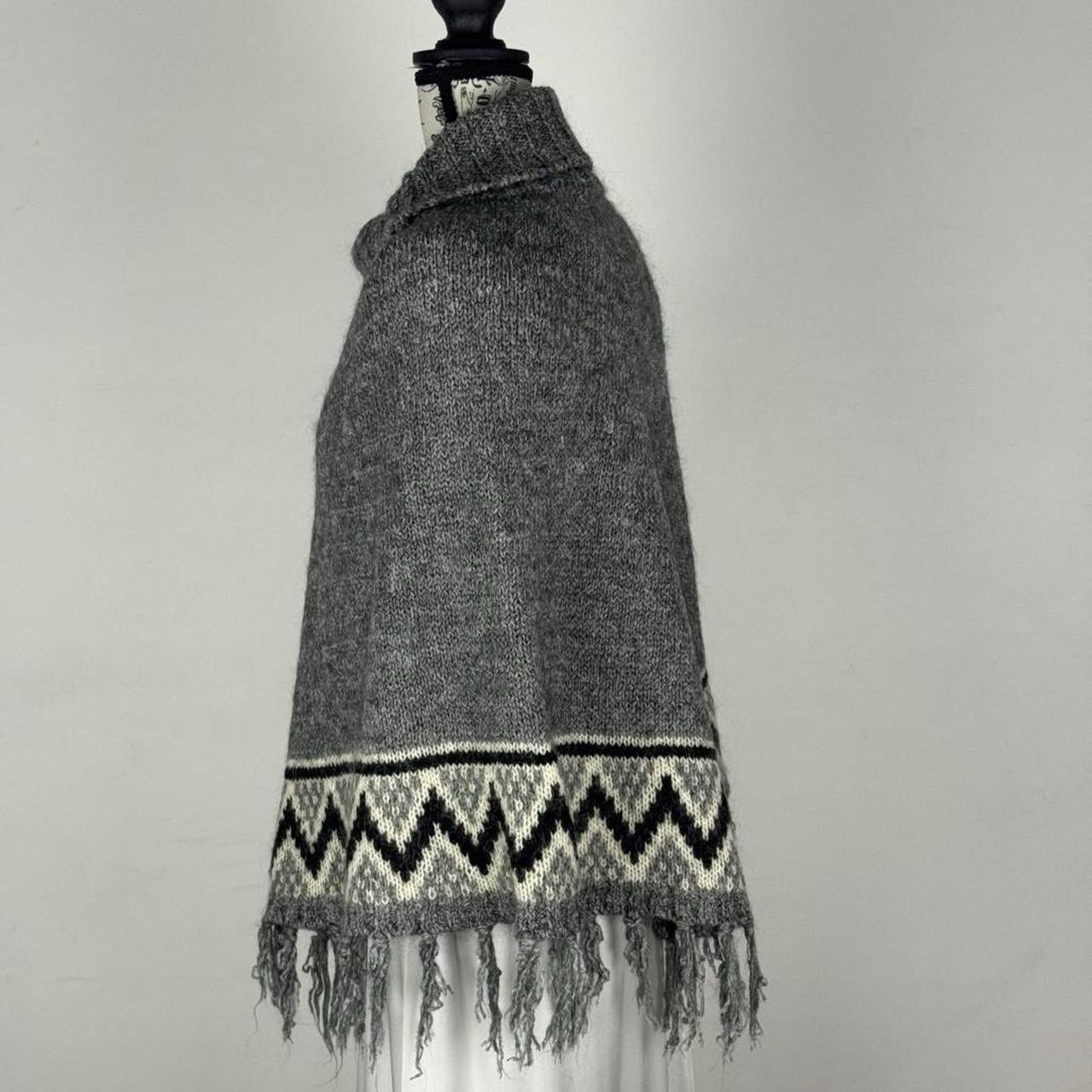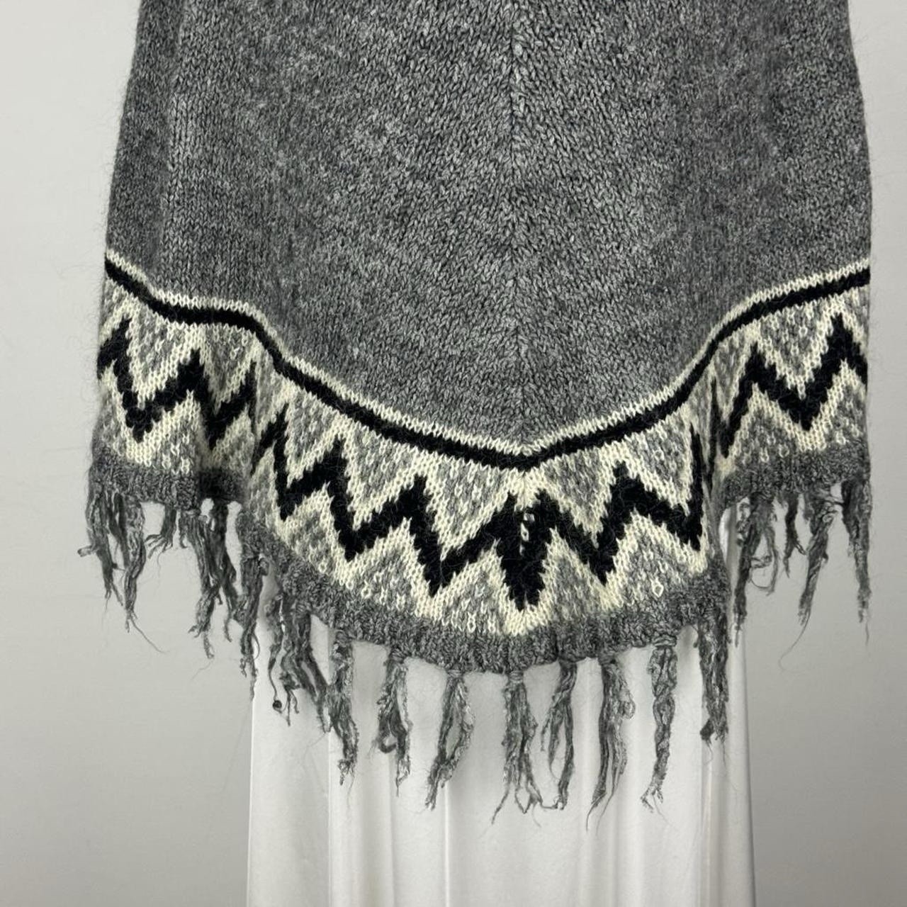 как выглядит Vintage Wool Cape Poncho Fringe Grey Hippy Boho Shawl S Aztec фото
