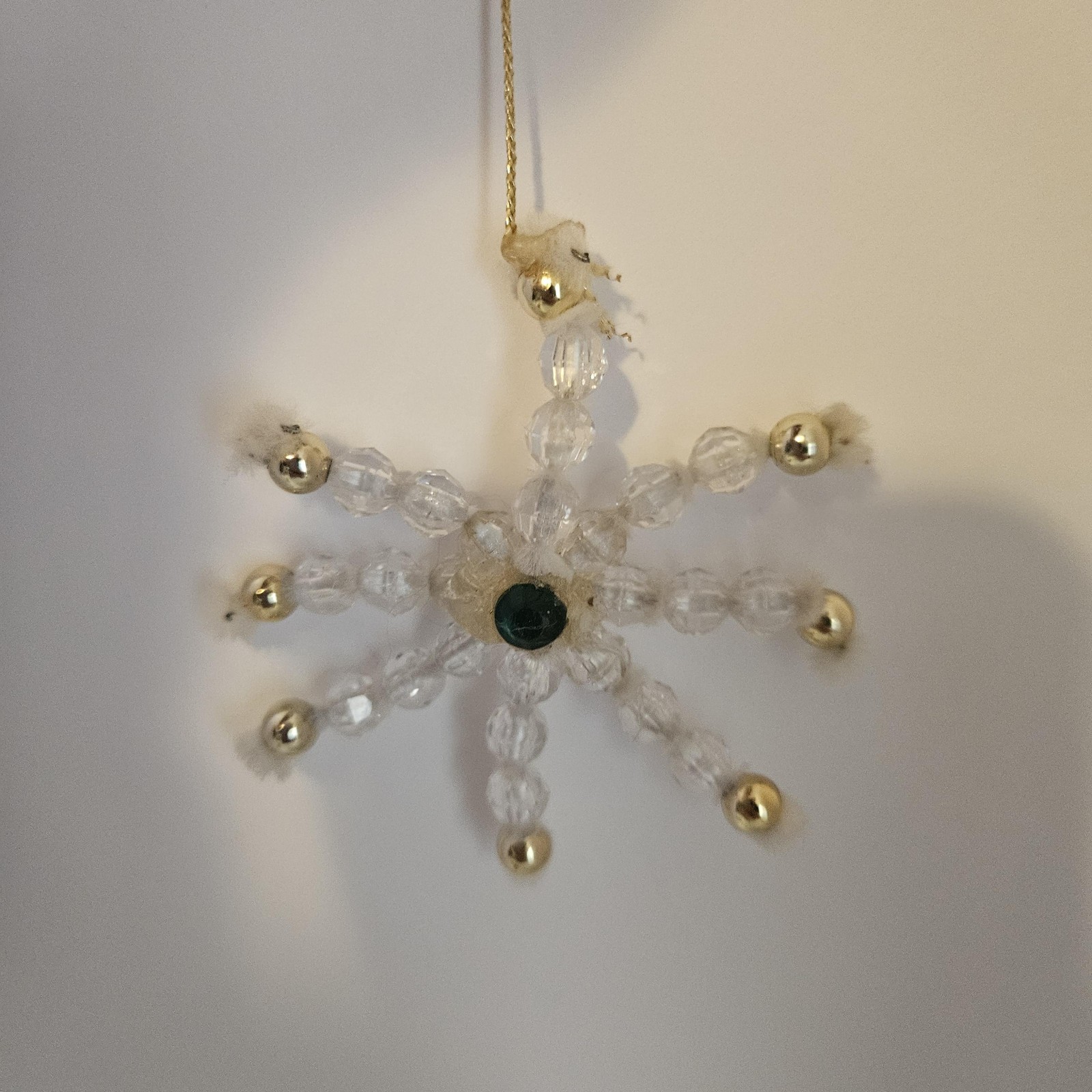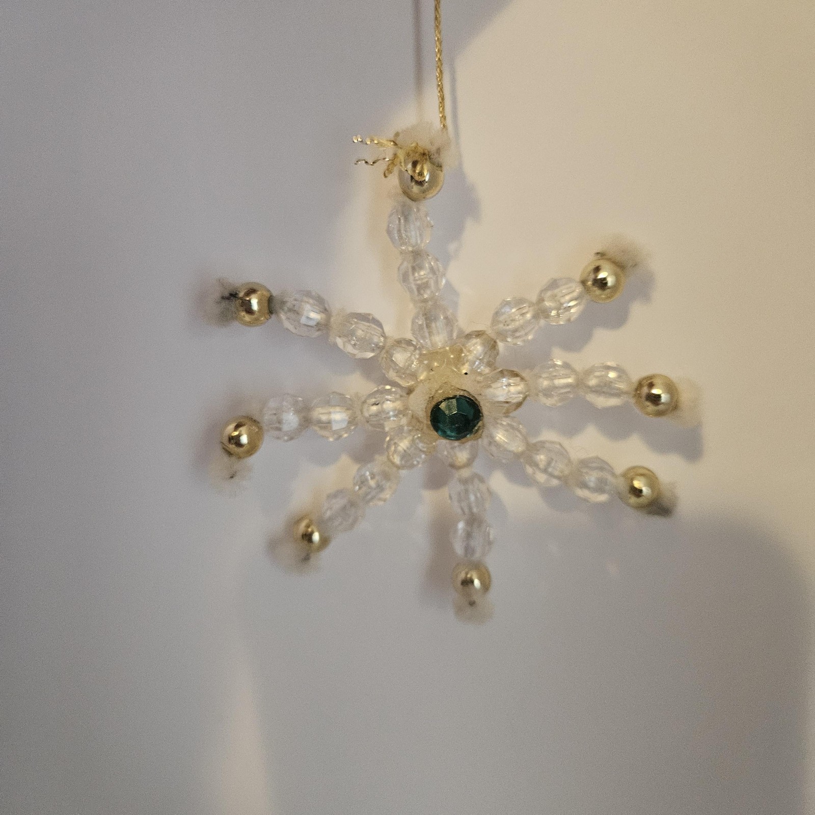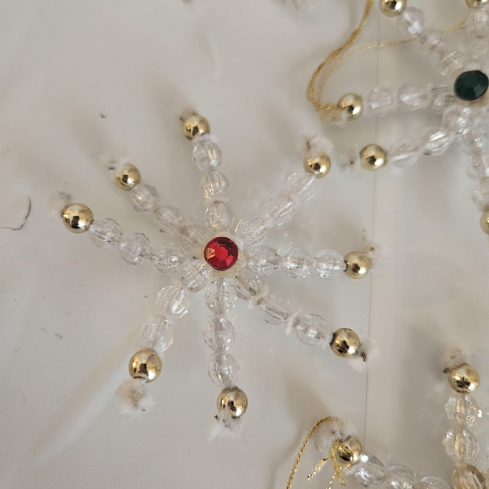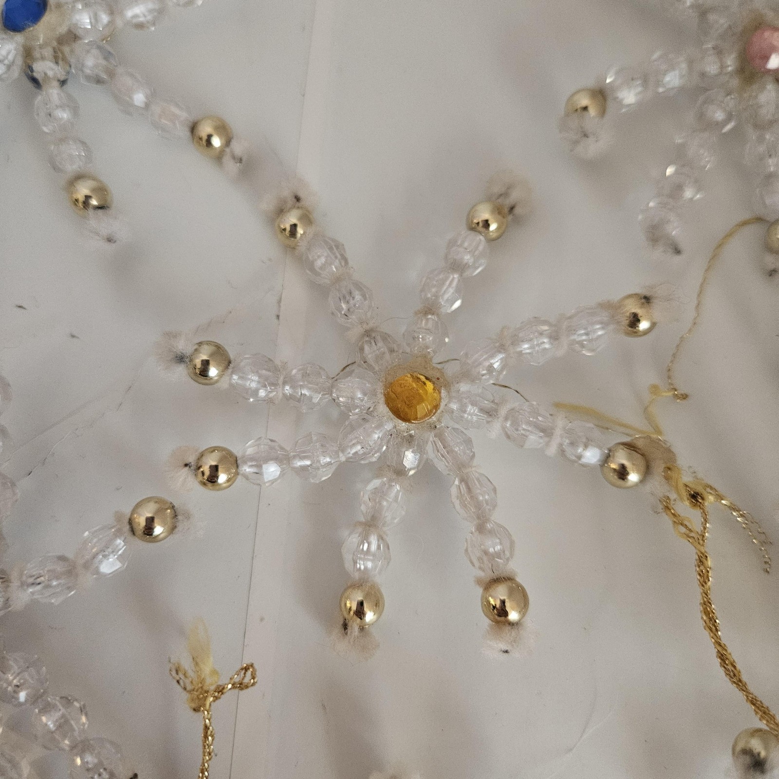 Handmade Clear Beaded 3 Snowflake Christmas Ornaments Set 9 Small Gold