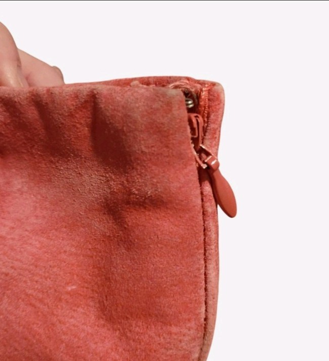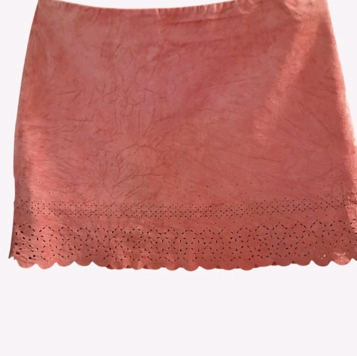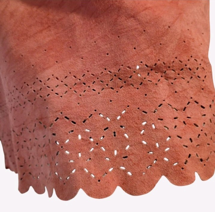 как выглядит Vintage Express Womens Size 11/12 Coral Genuine Leather Suede Laser Cut Skirt фото