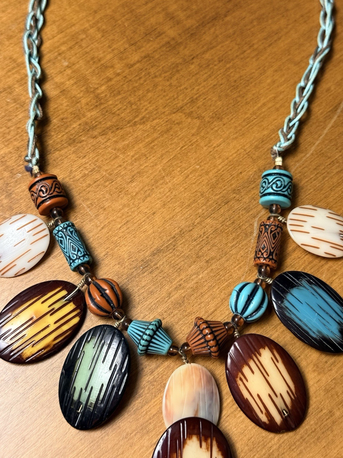 как выглядит Vintage 1980s Multi Colored Tagua Nut Statement Necklace Boho Beaded фото