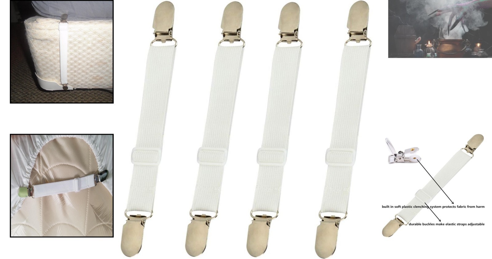 Durable Bed Sheet Holder Straps - 4 Pack Adjustable Elastic Suspender Fasteners