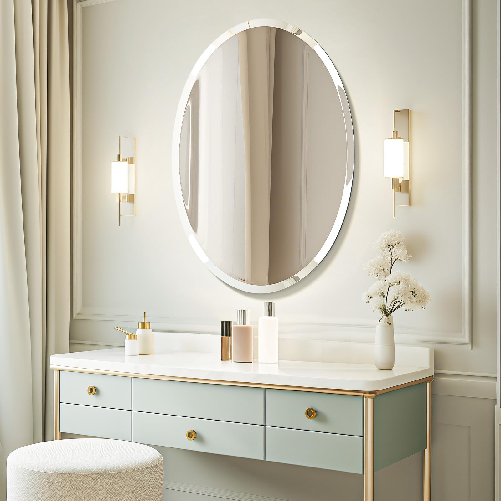 24x36In High Definition Frameless Oval Wall Mirror Bathroom/Vanity Beveled Edge