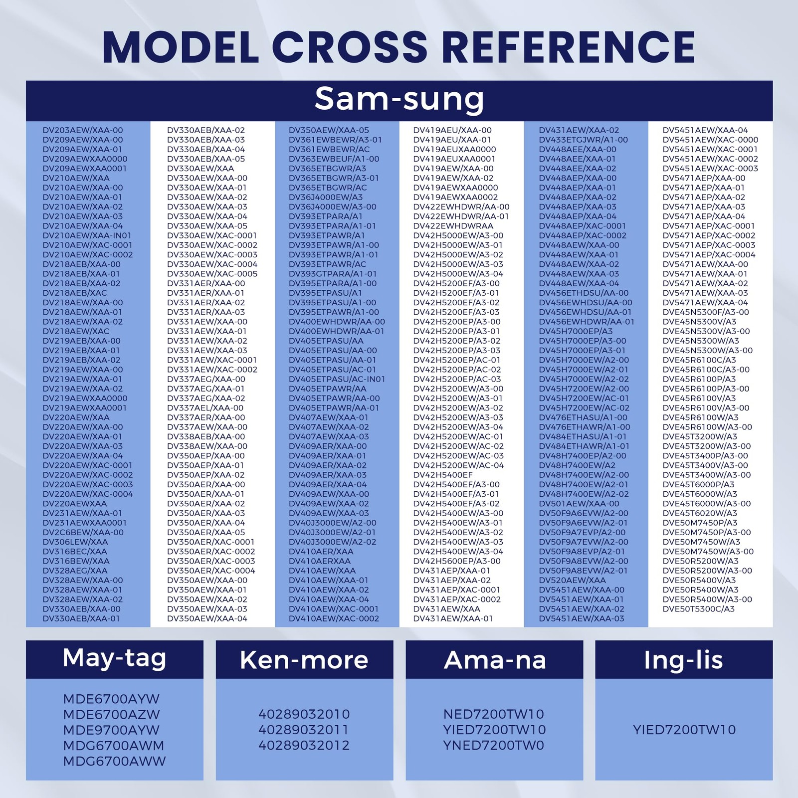 Suitable For: Electric Dryers