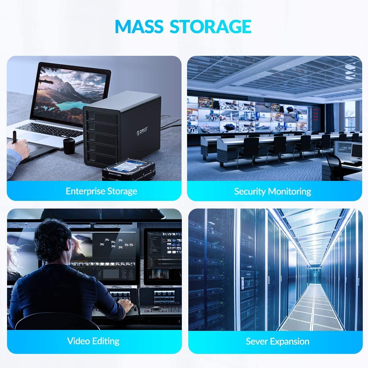 ORICO 5 Bay USB 3.0 to SATA External Hard Drive RAID Enclosure fit 2.5/3.5'' HDD