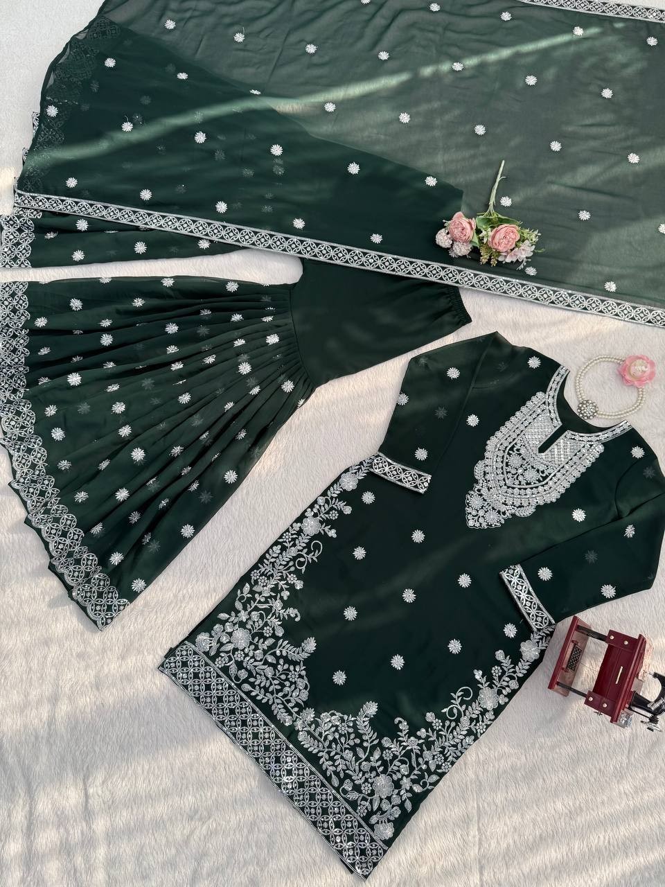 Bollywood Look Faux Georgette Green Top Palazzo With Dupatta For Women Girls