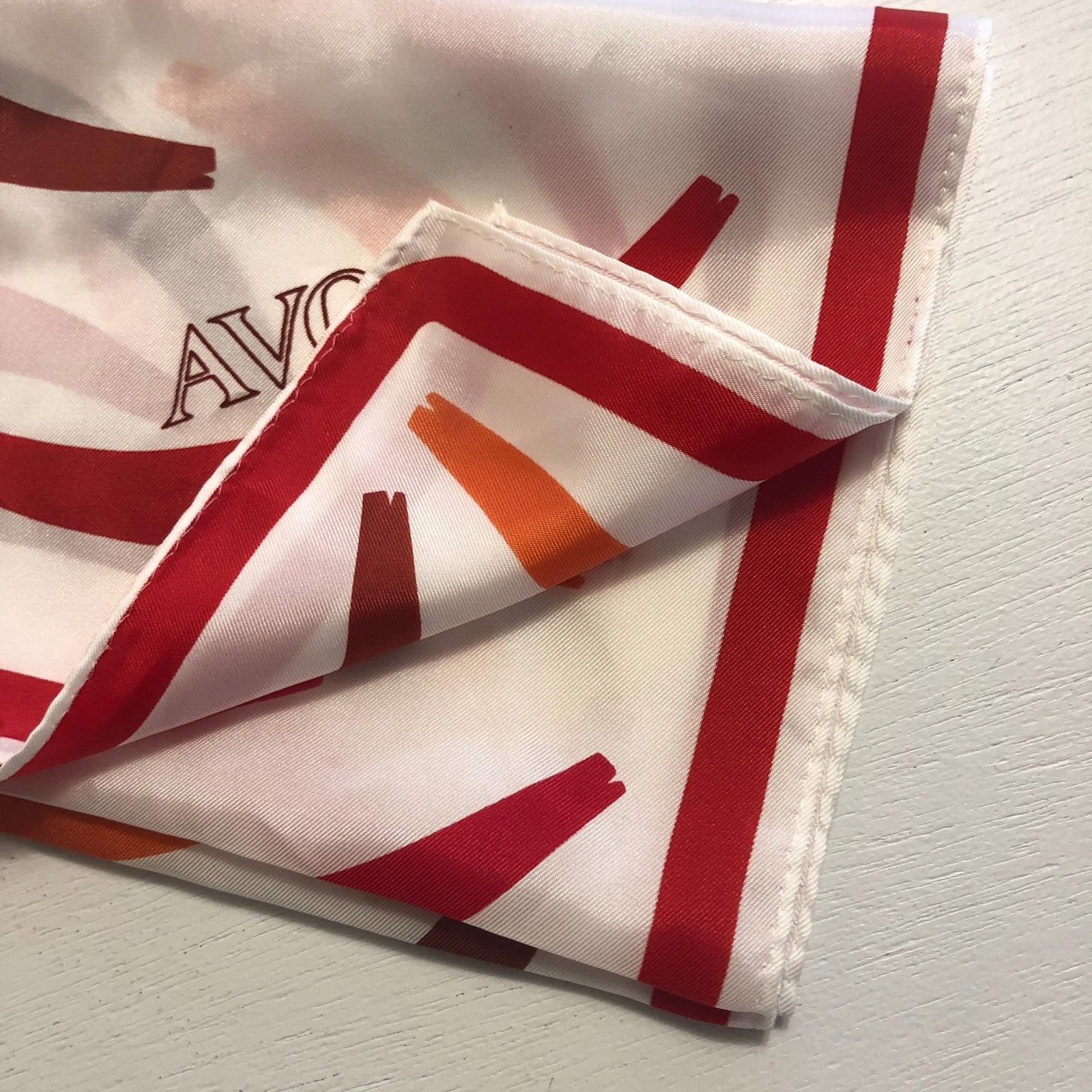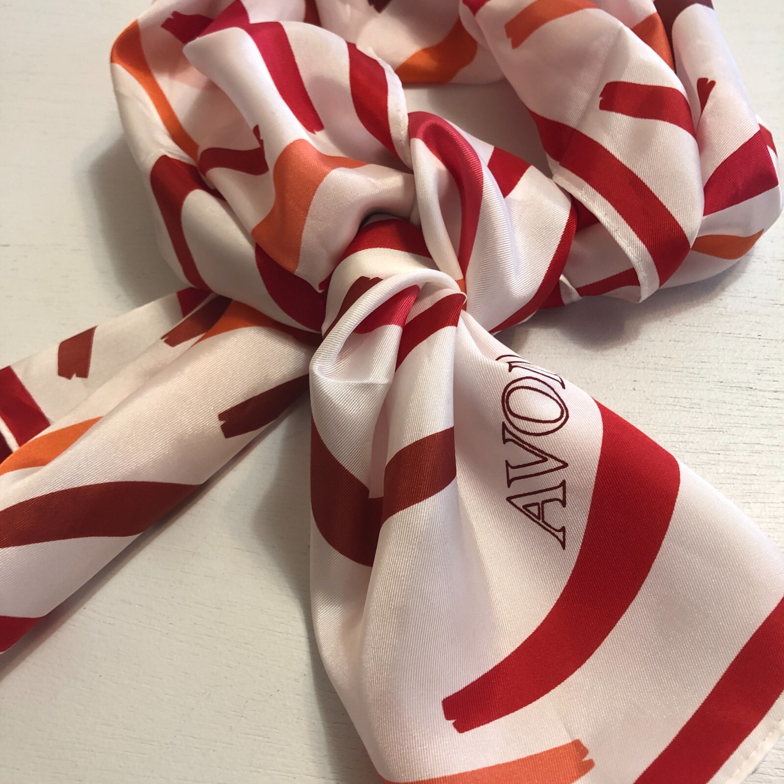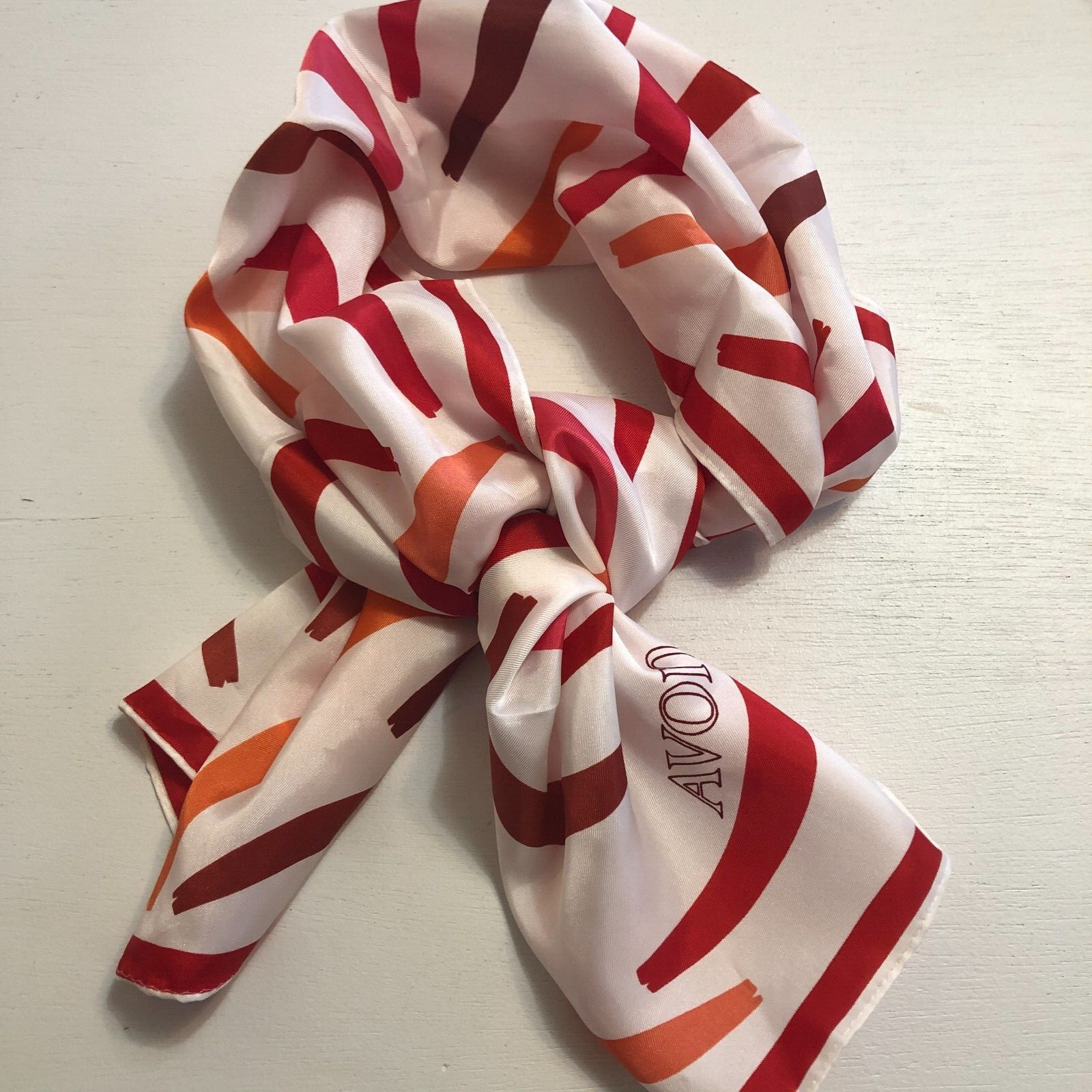 Vintage 70s AVON Signed Scarf 11.5 x 51 White Red Acetate Long Retro Japan