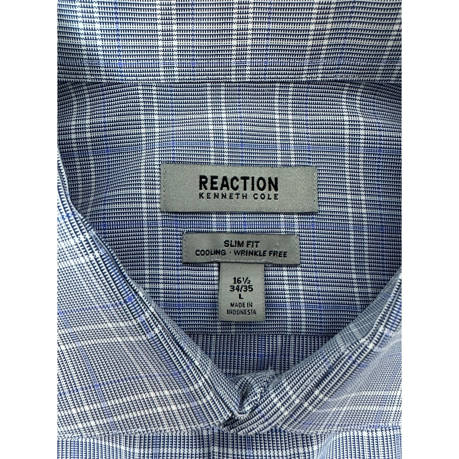 Kenneth Cole Men's Blue Plaid Slim Fit Cotton Dress Shirt Size Large