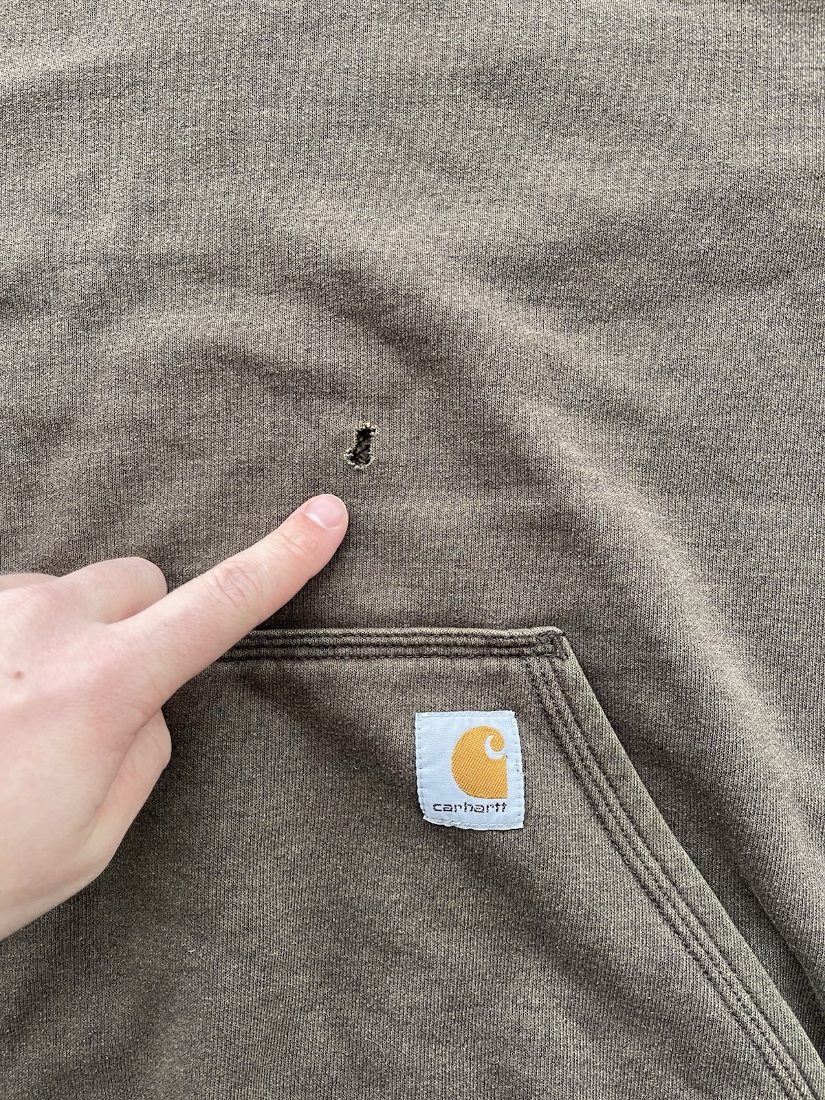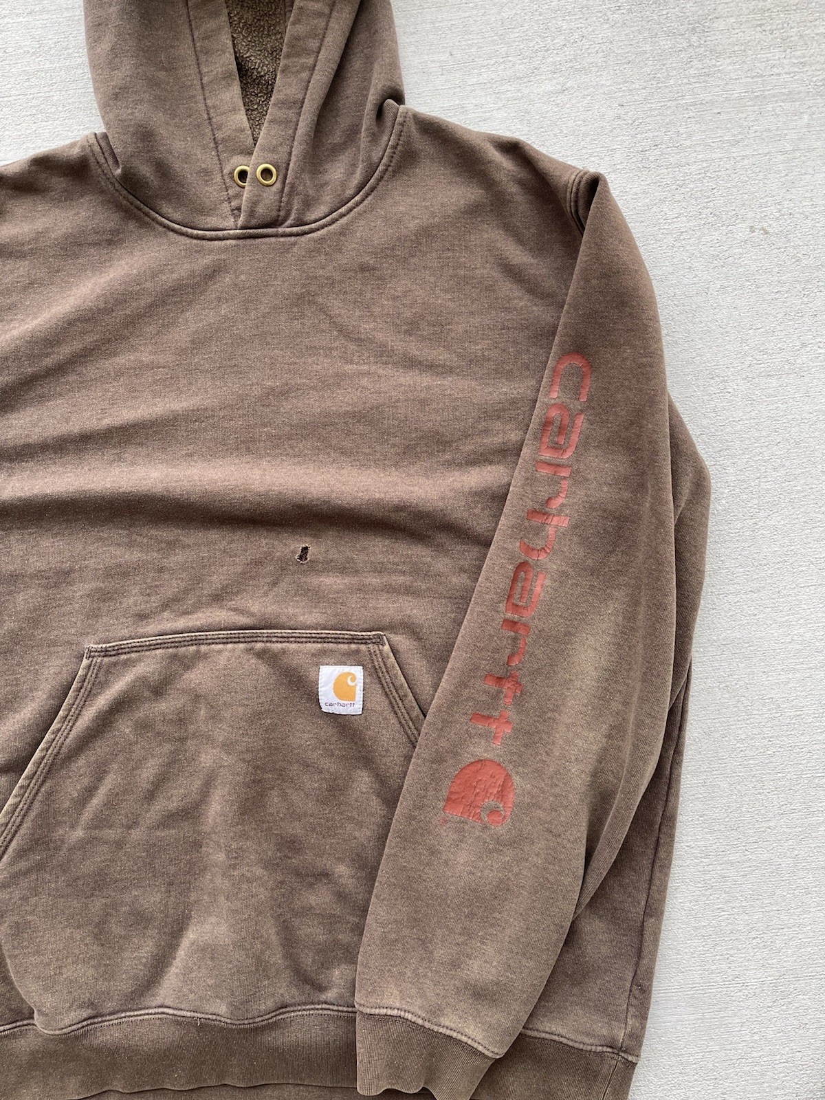 Y2K Carhartt Hoodie Pullover Size Large Distressed Faded Workwear Brown K288 202