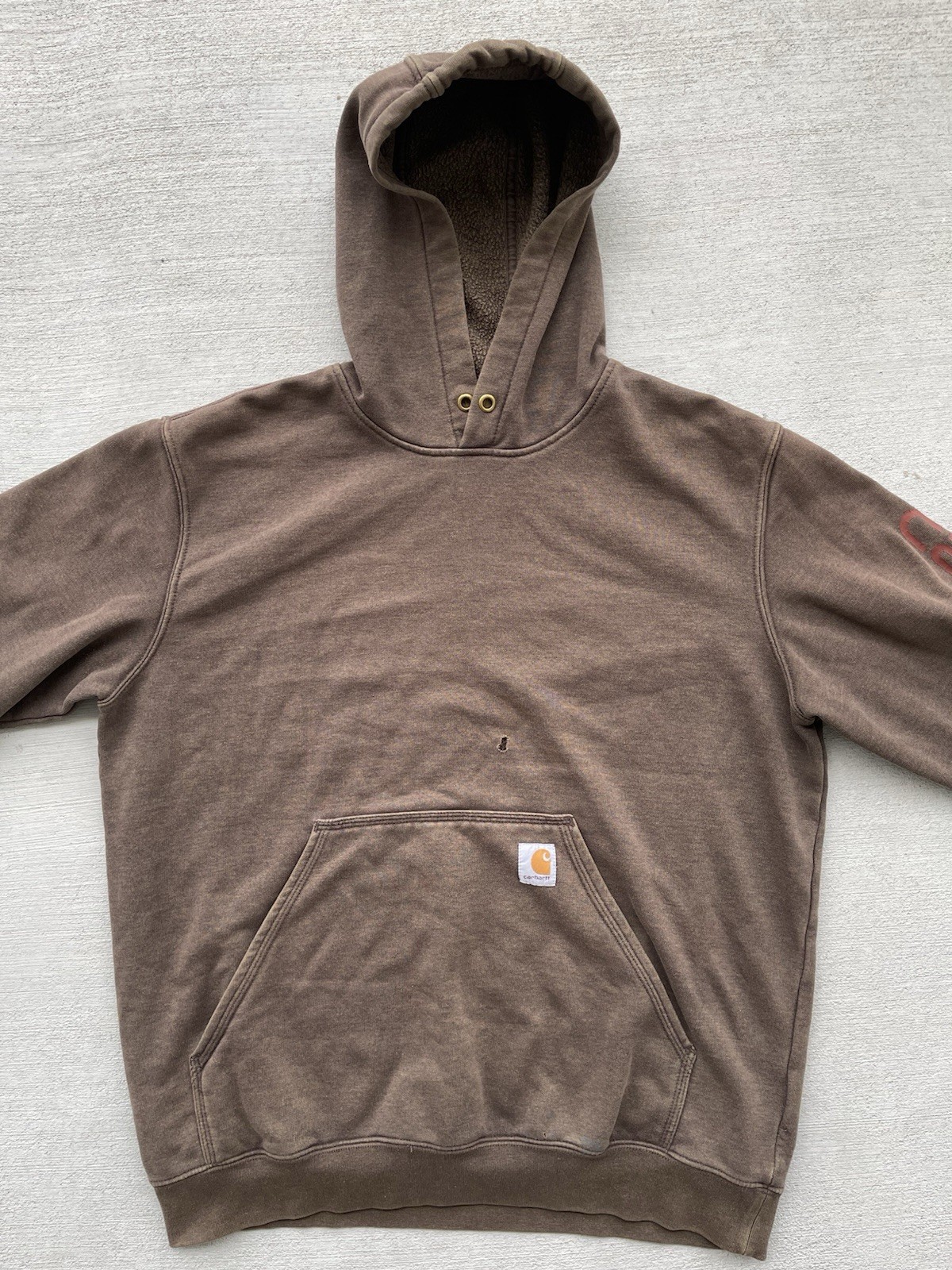 как выглядит Y2K Carhartt Hoodie Pullover Size Large Distressed Faded Workwear Brown K288 202 фото