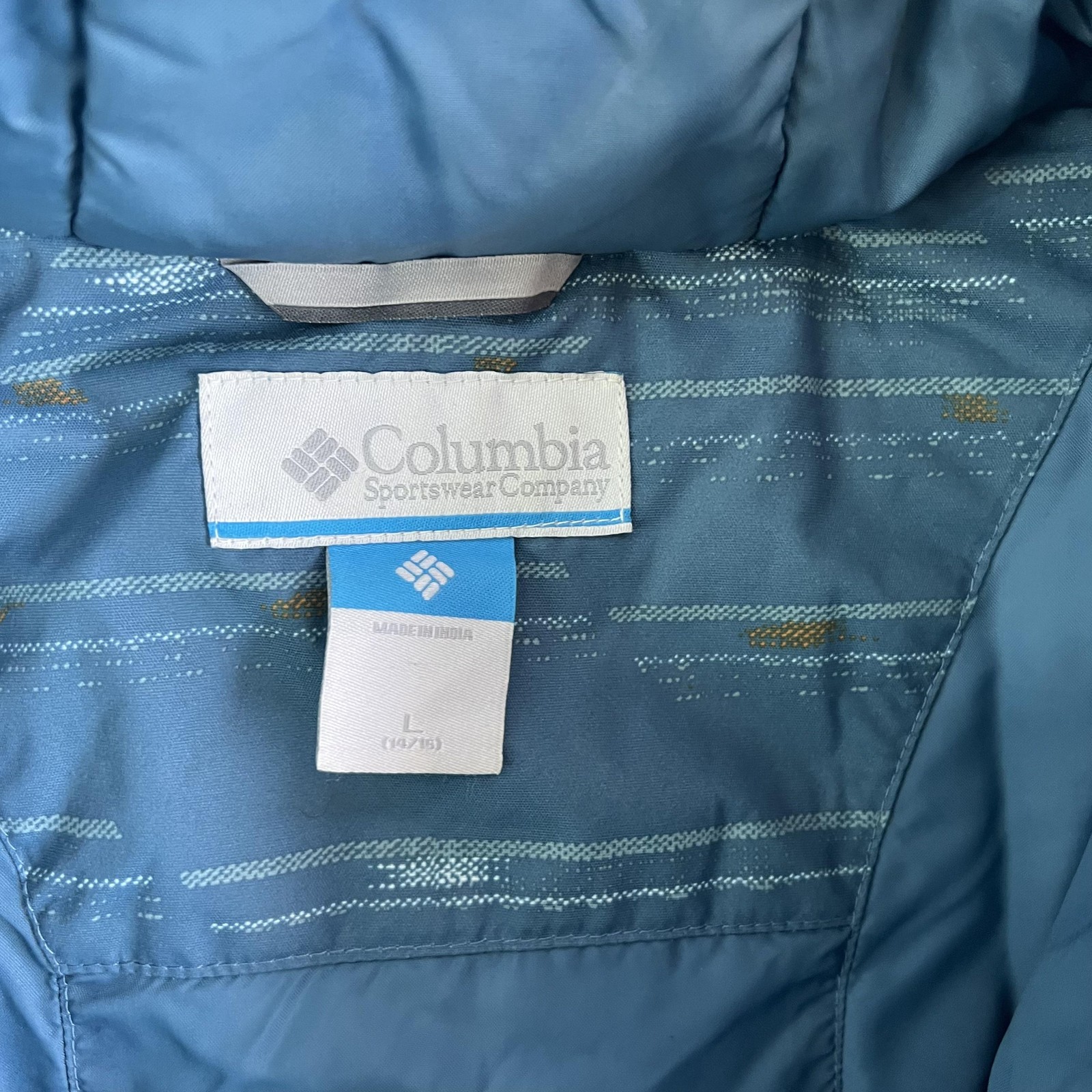 как выглядит Columbia Ski Jacket Kids Large 14/16 Blue Hooded Insulated Winter Coat Striped фото