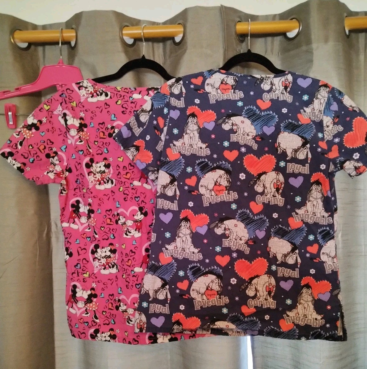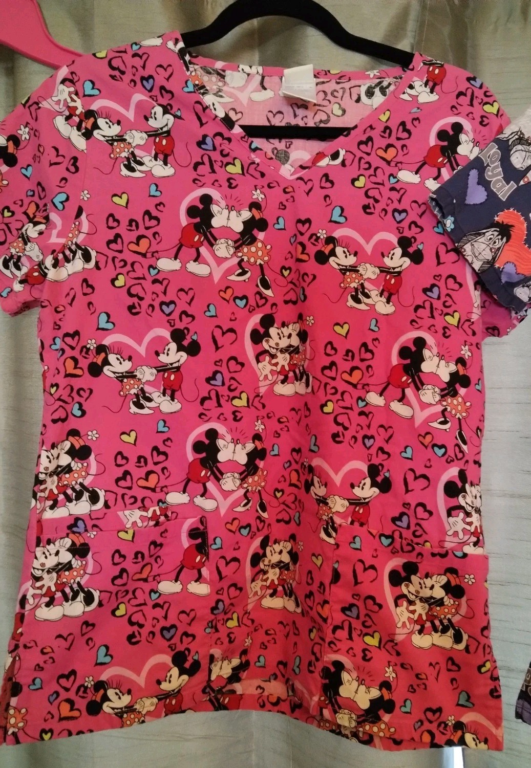 как выглядит Disney Scrub Tops Eeyore MickyMinney Sz S Pockets Side Slits Set Of 2 фото