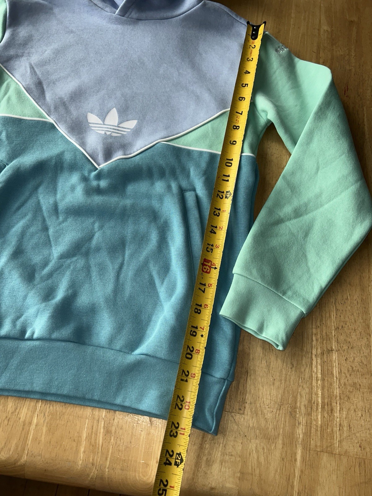как выглядит Adidas pull over hoodie sweatshirt originals kids youth medium / large blue фото