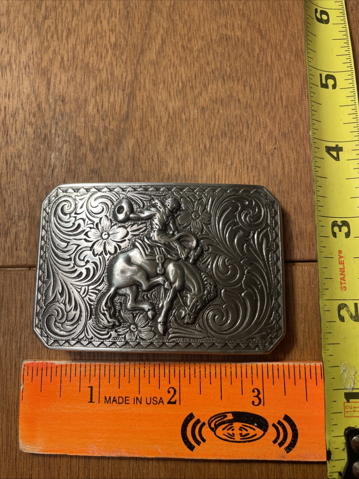 Vintage Western Cowboy Bronc Rider Belt Buckle Silver Toned Metal
