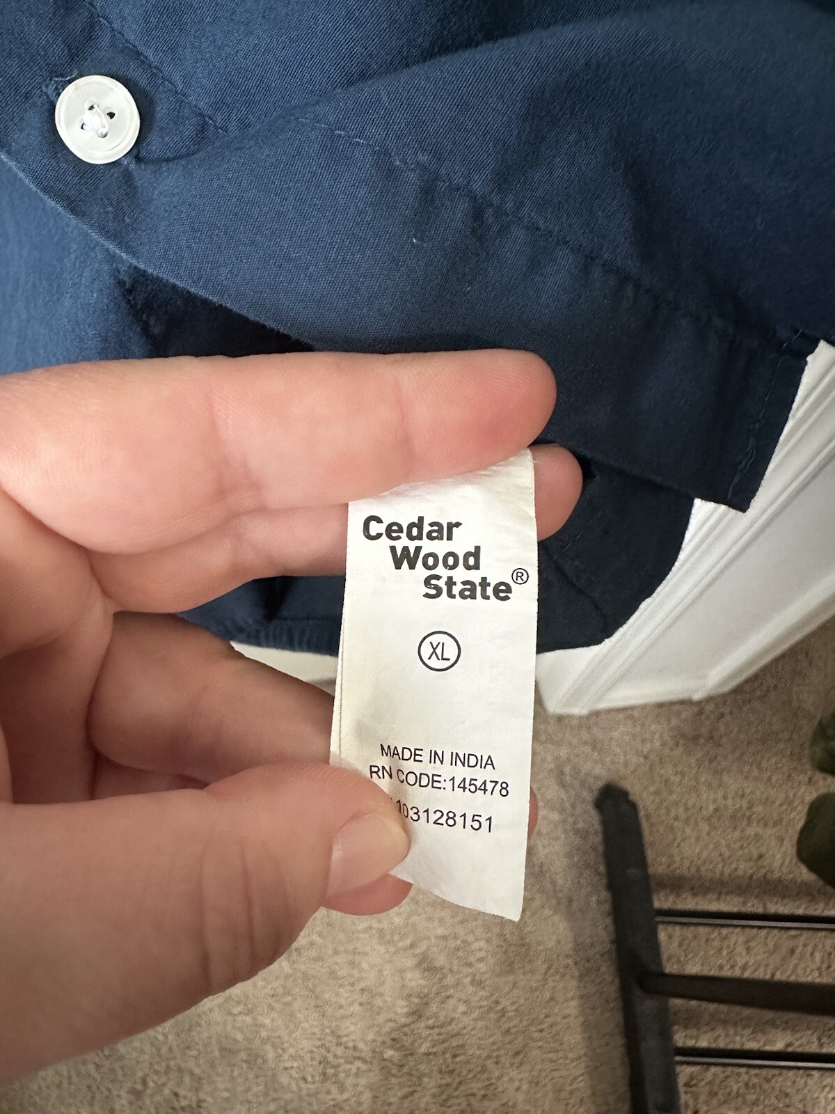 как выглядит Mens Navy Blue Cedar Wood State Button Down Shirt XL фото